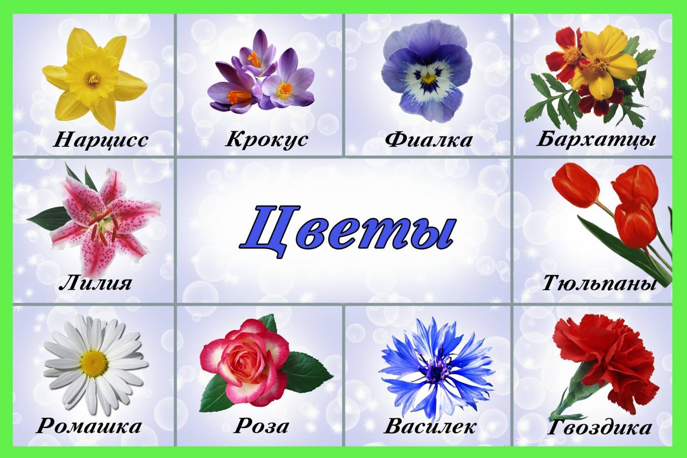 СкачатьНазвания цветов для дошкольников