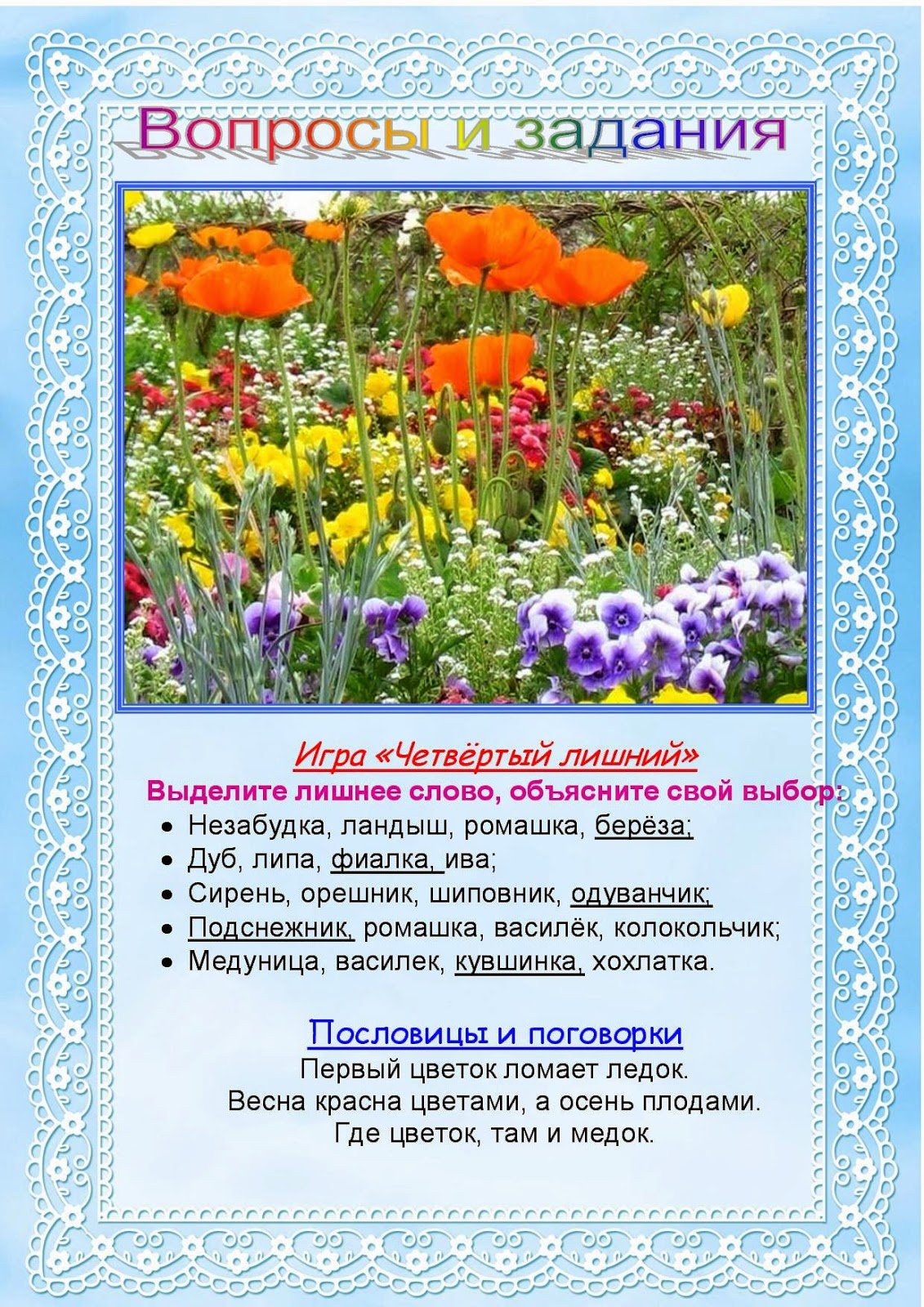 СкачатьЦветы задания для детей