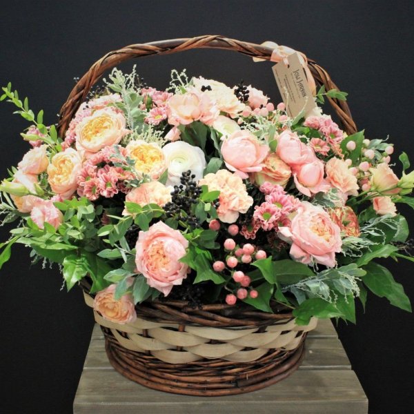 ![Корзина пионовидных роз]()