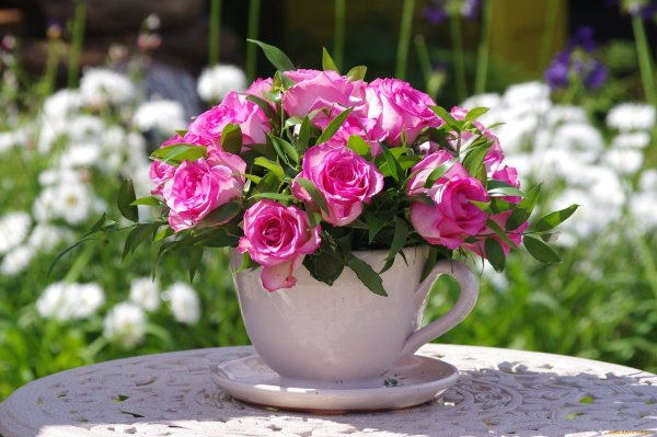 ![Красивые цветы в чашке]()
