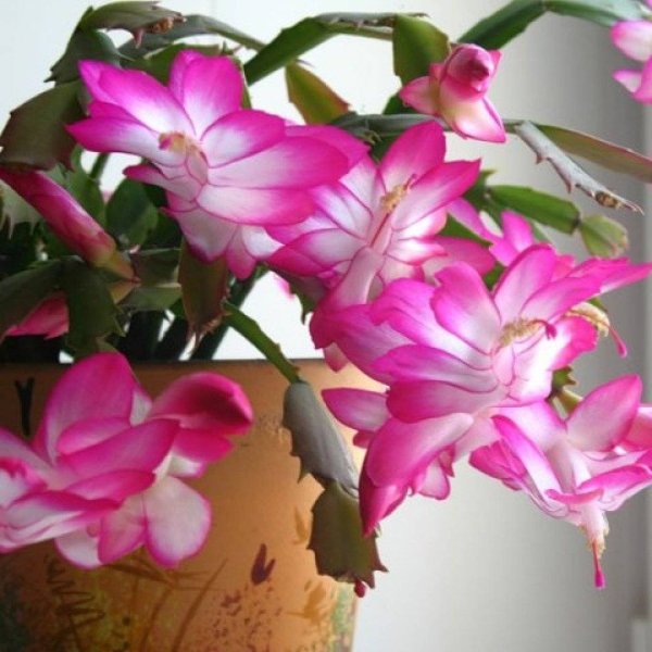 Декабрист (Schlumbergera) – изумительное и необычное растение, которое поражает своей красотой и нежностью. Оно известно также под названием "кактус Рождества" или "кактус Нового года". Внешне декабрист представляет собой ветвистый кустик с длинными и плоскими зелеными стеблями, на концах которых располагаются яркие и крупные цветы различных оттенков. Одна из самых привлекательных особенностей декабриста - его способность цвести в самые холодные и темные месяцы года, создавая атмосферу праздника и восхищая своими яркими и сочными цветами. Палитра цветов декабриста включает в себя различные оттенки розового, красного, фиолетового, оранжевого и белого, что позволяет каждому найти именно то, что будет гармонично сочетаться с интерьером своего дома или офиса. Насладитесь уникальной красотой картинок цветов декабриста и дополните свое пространство яркими и неповторимыми акцентами природы.