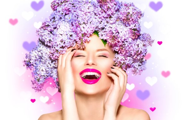 Счастливая женщина с цветами