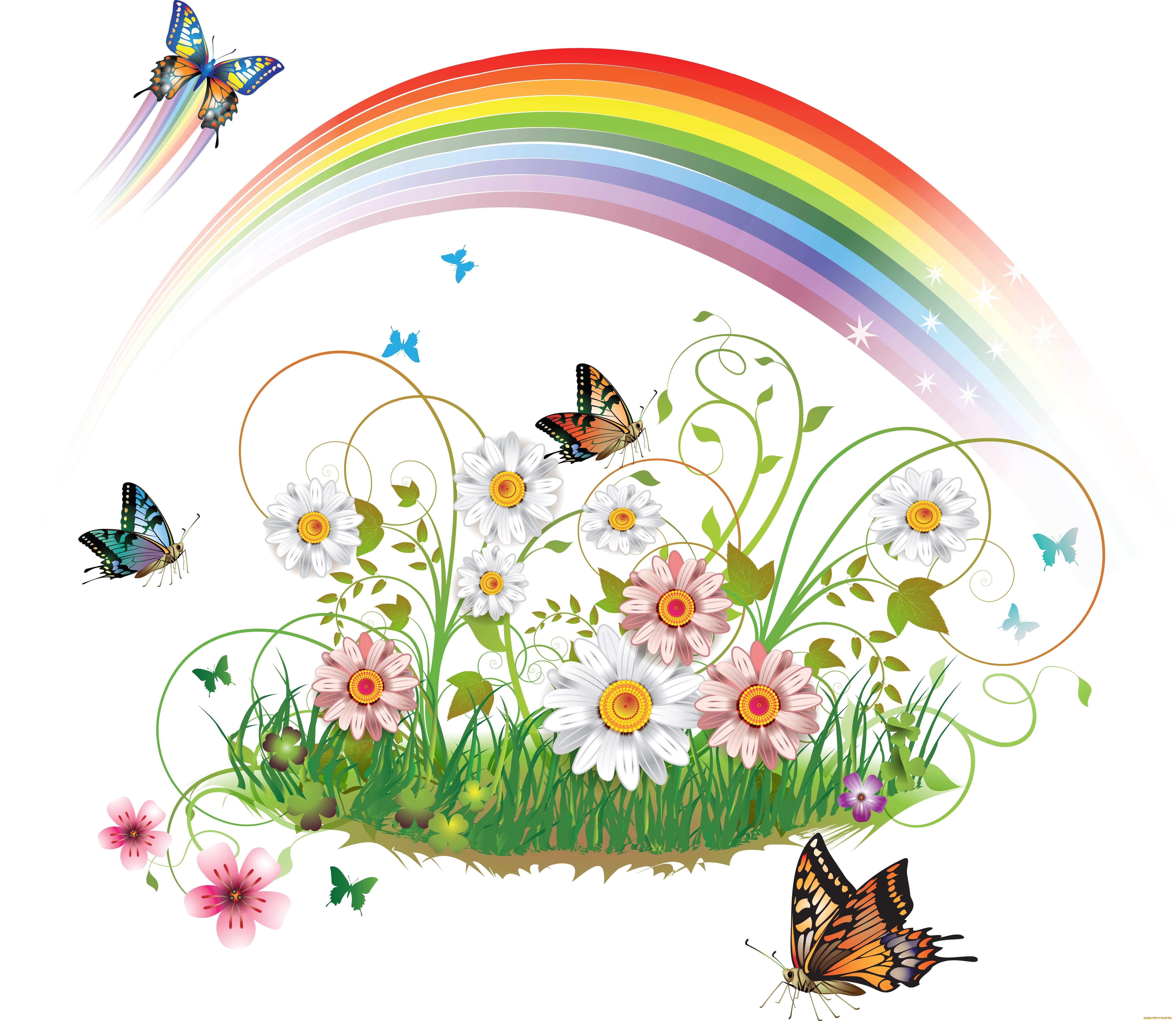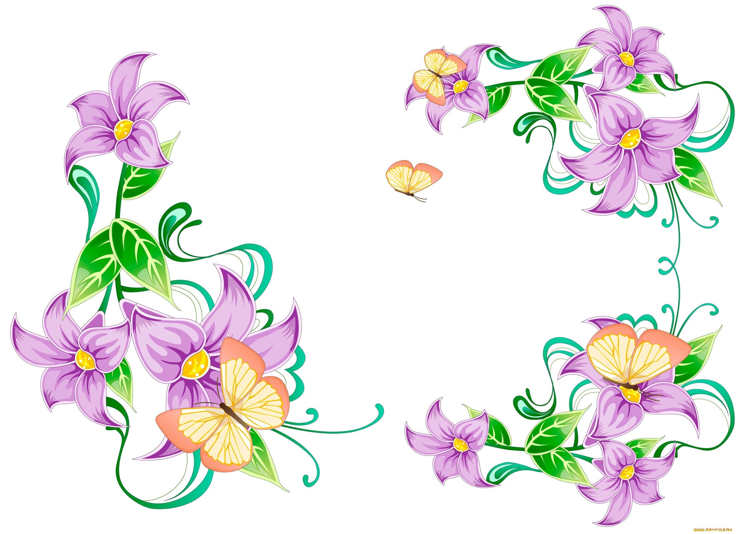 Цветочки с бабочками без фона