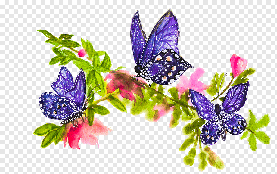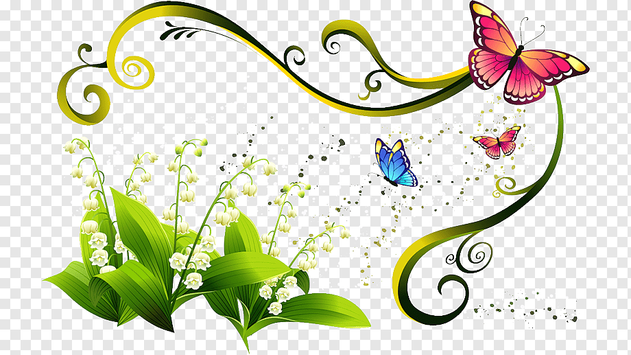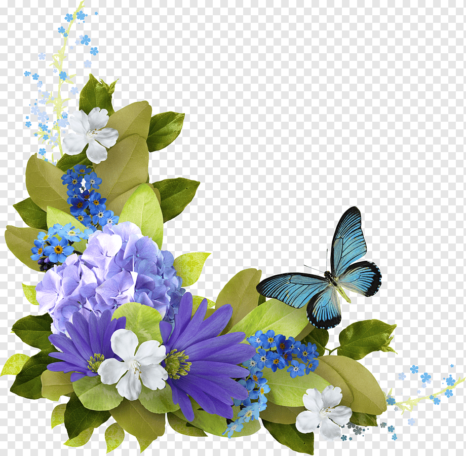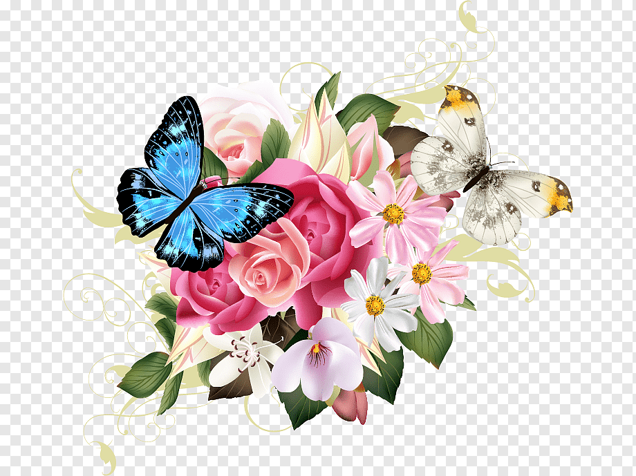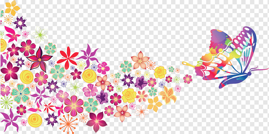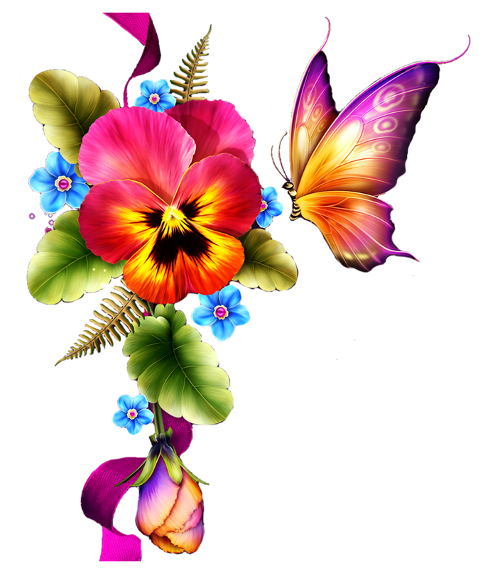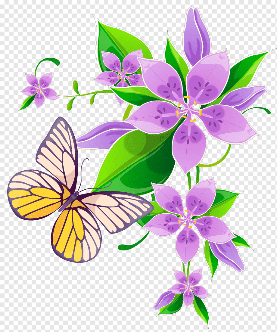 Клипарт на прозрачном фоне цветы бабочки