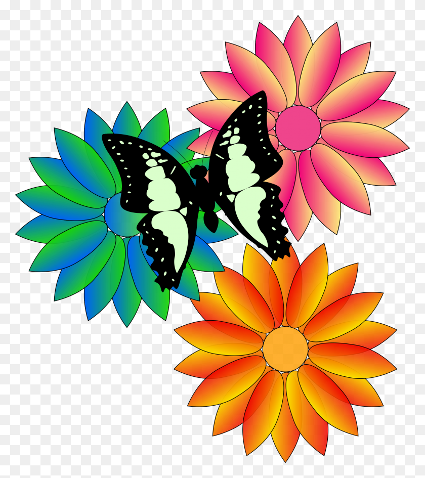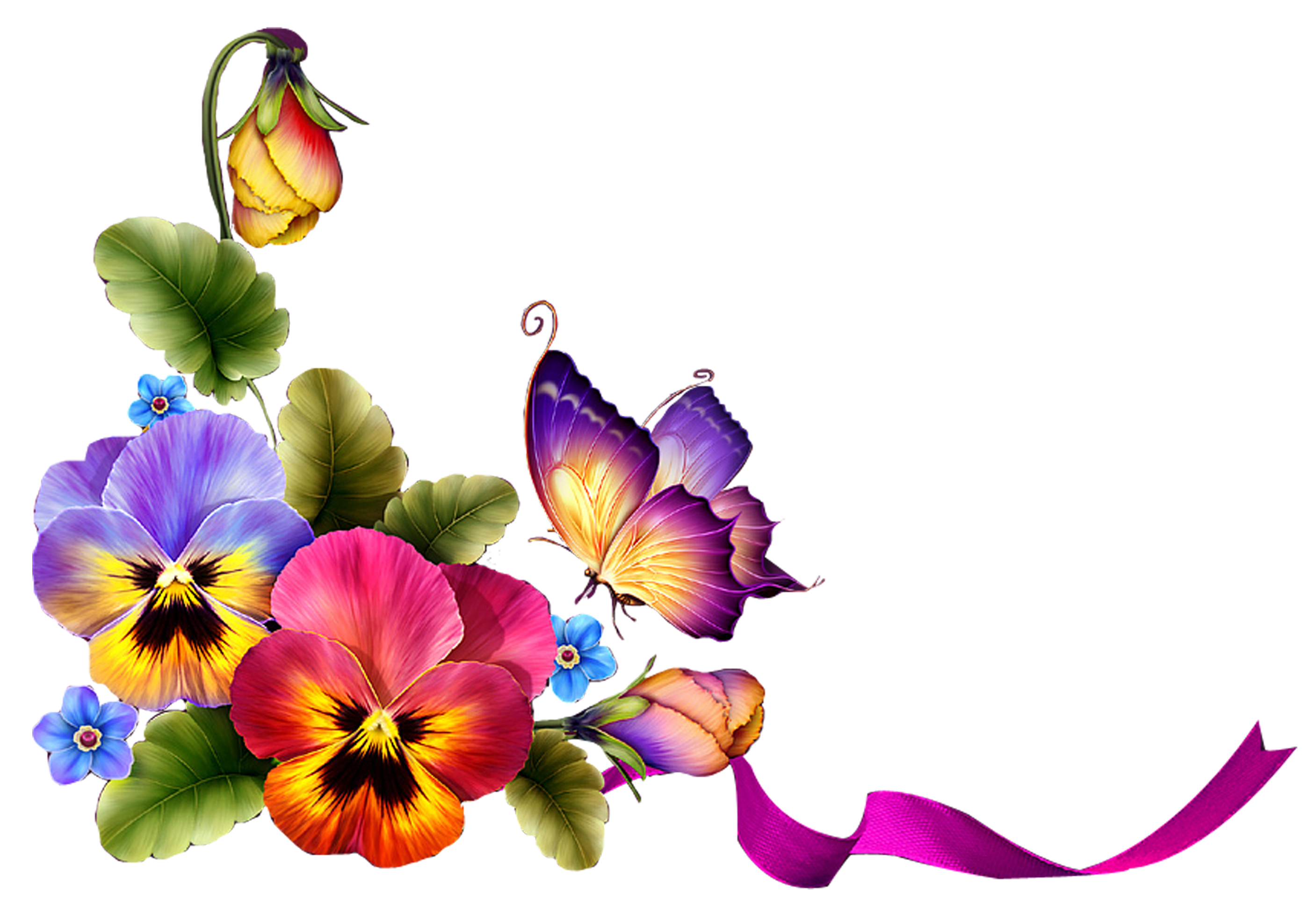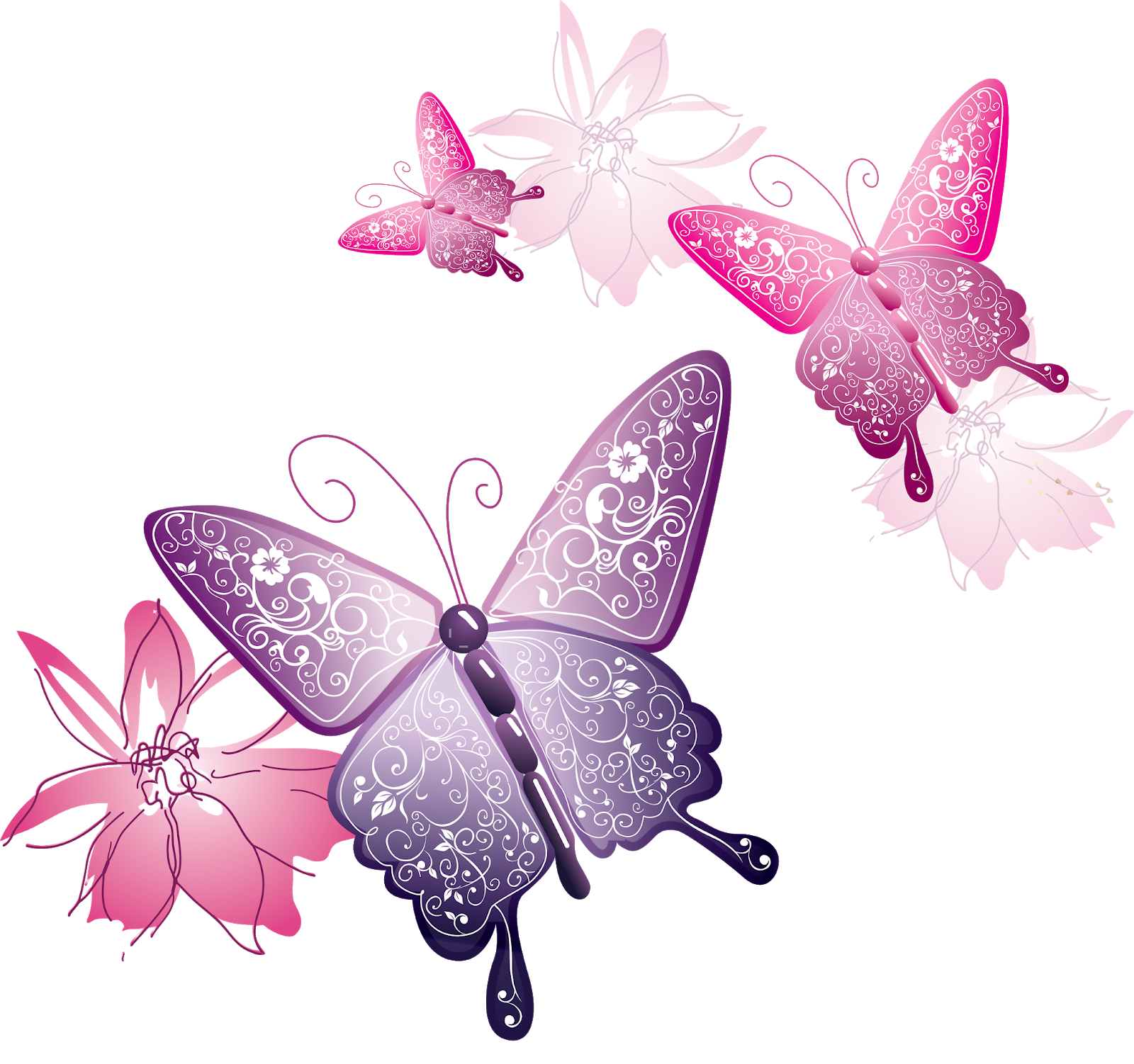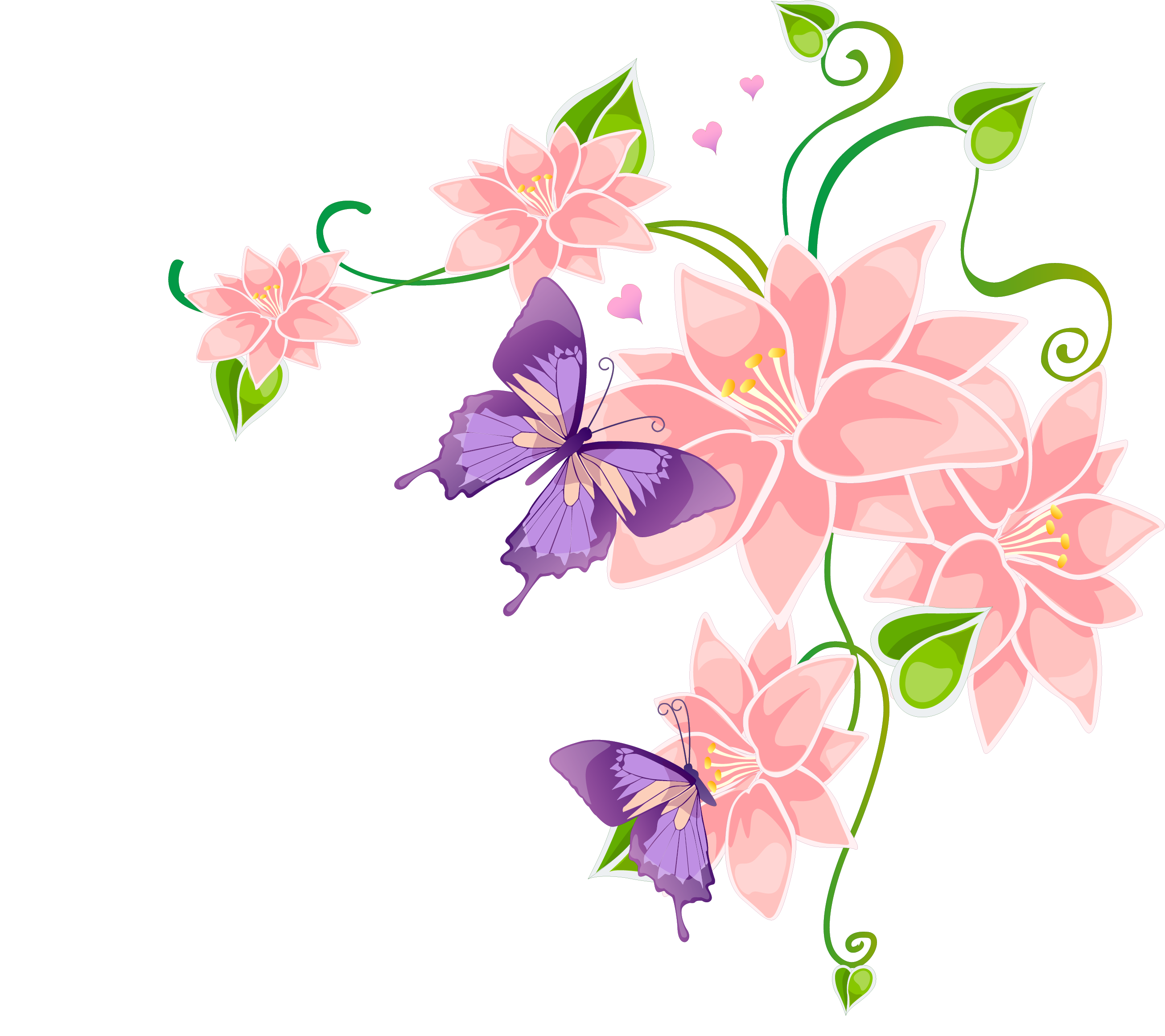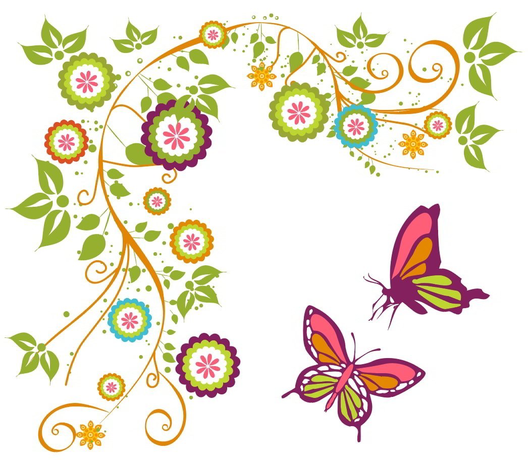 Клипарт на прозрачном фоне цветы бабочки