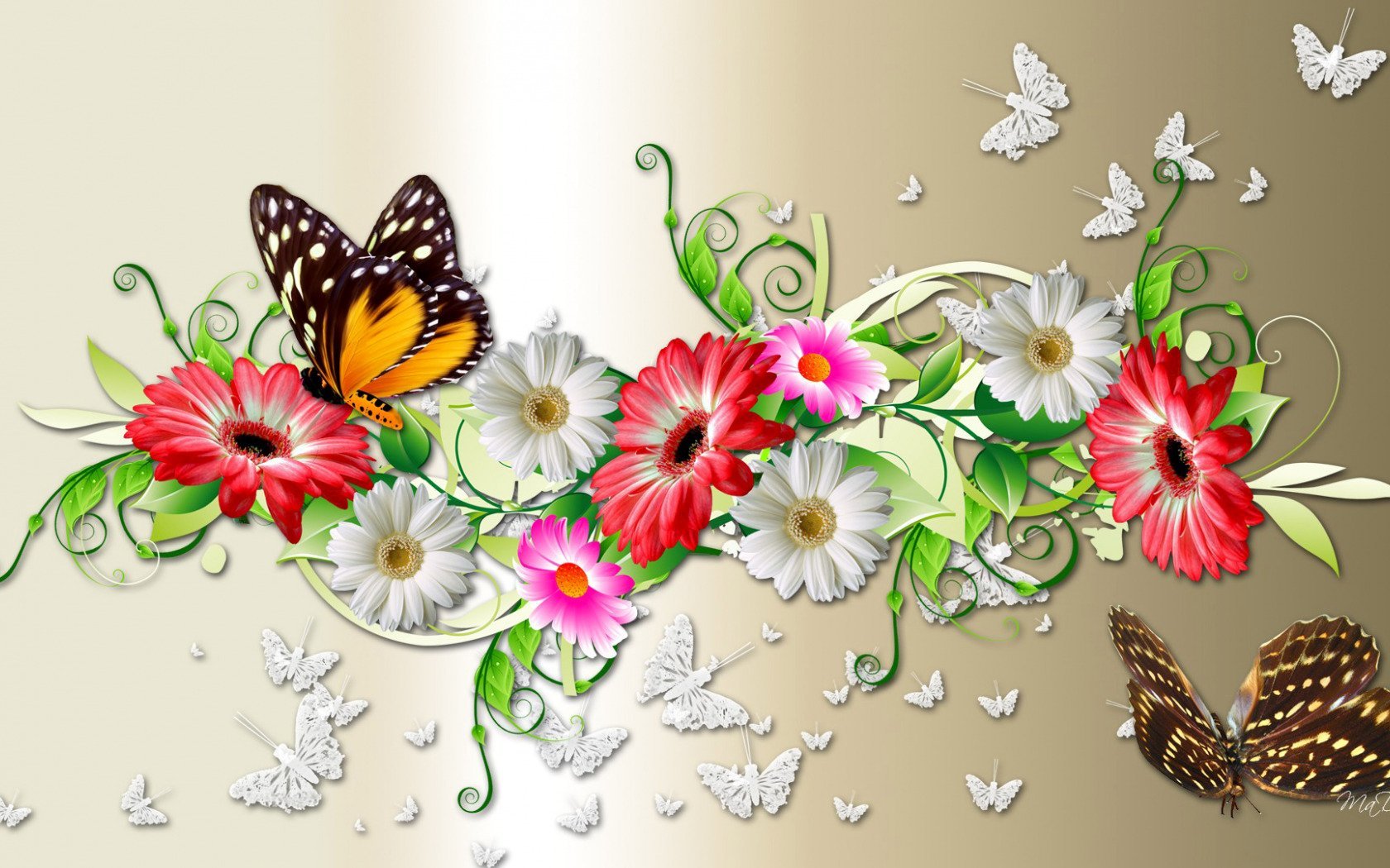 ![Фон с цветами и бабочками]()