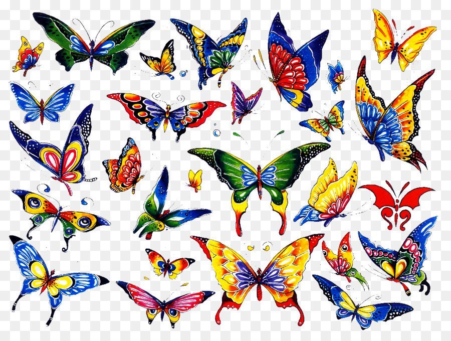 ![Россыпь бабочек на прозрачном фоне]()