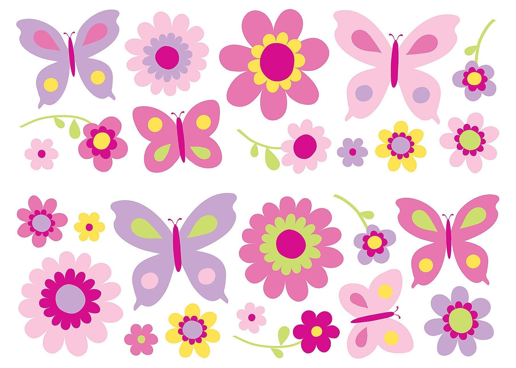 ![Мультяшные цветочки и бабочки]()