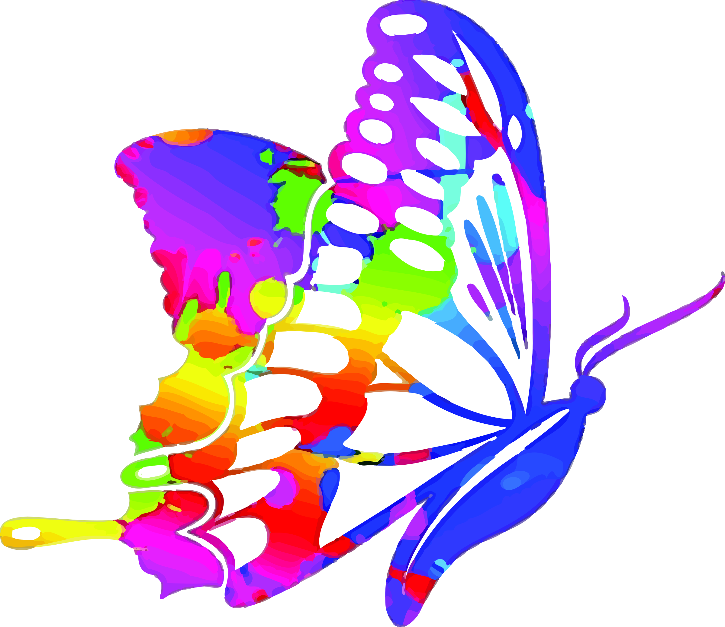 ![Радужная бабочка на белом фоне]()