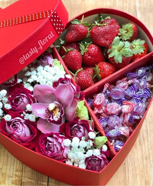 ![Коробка цветы и конфеты]()