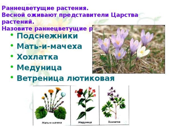 ![Первоцветы:ветреница, мать и мачеха, хохлатка]()