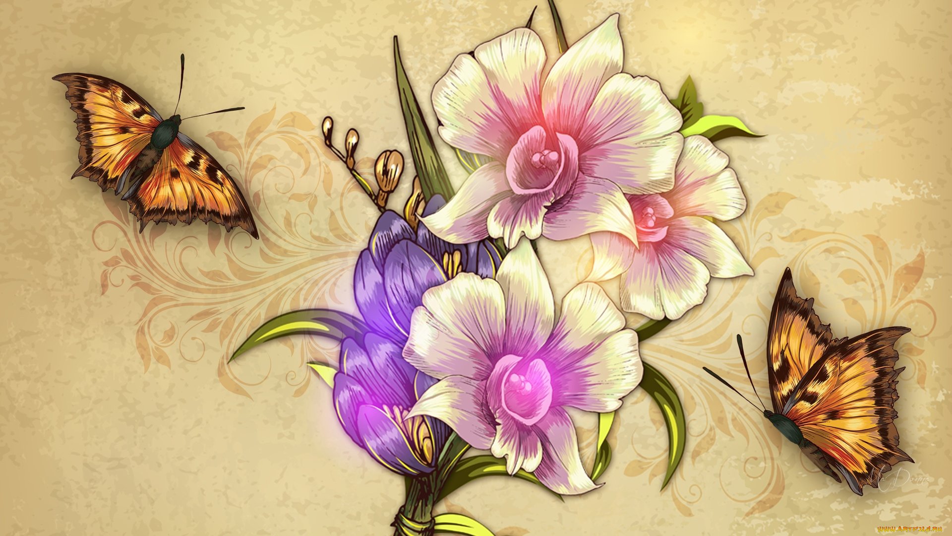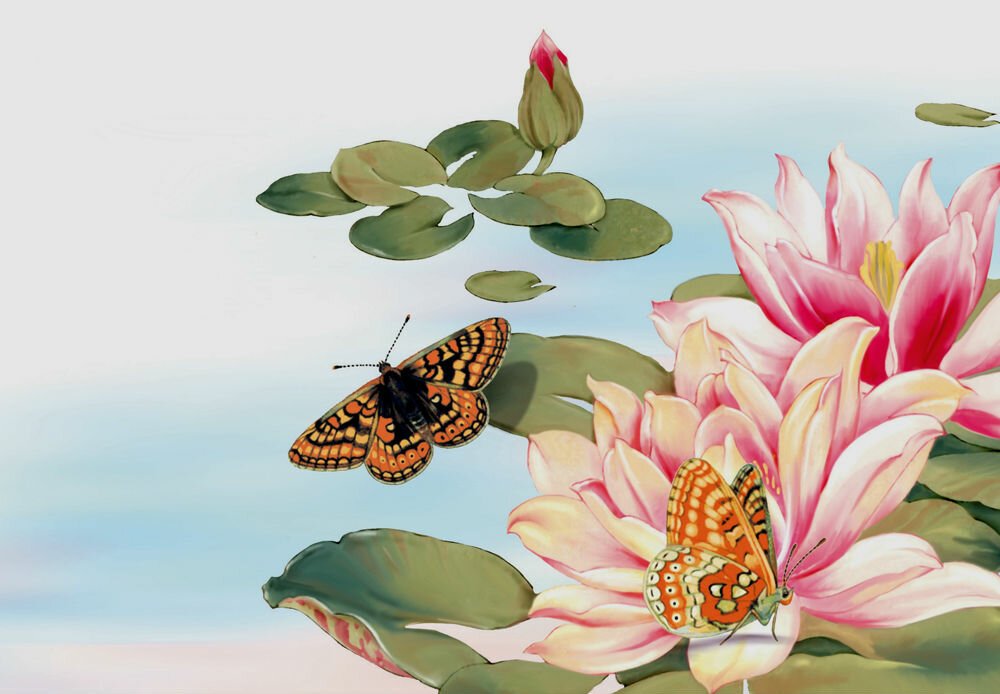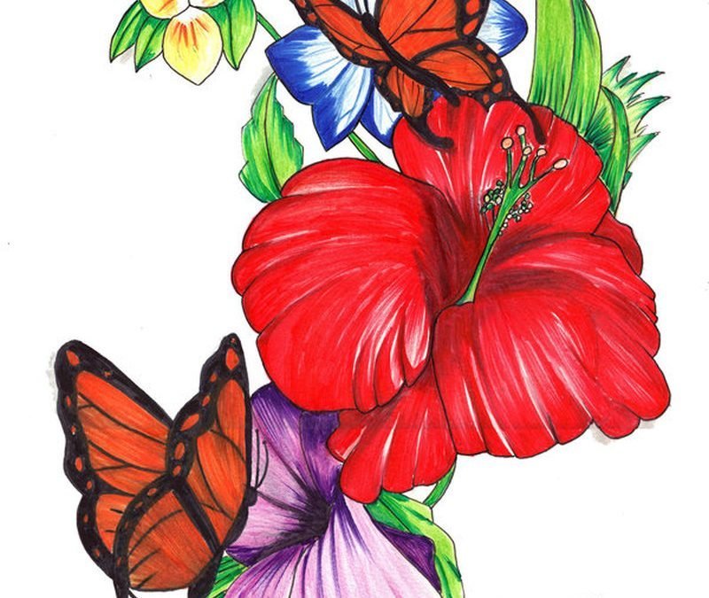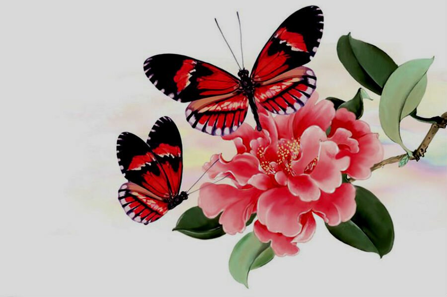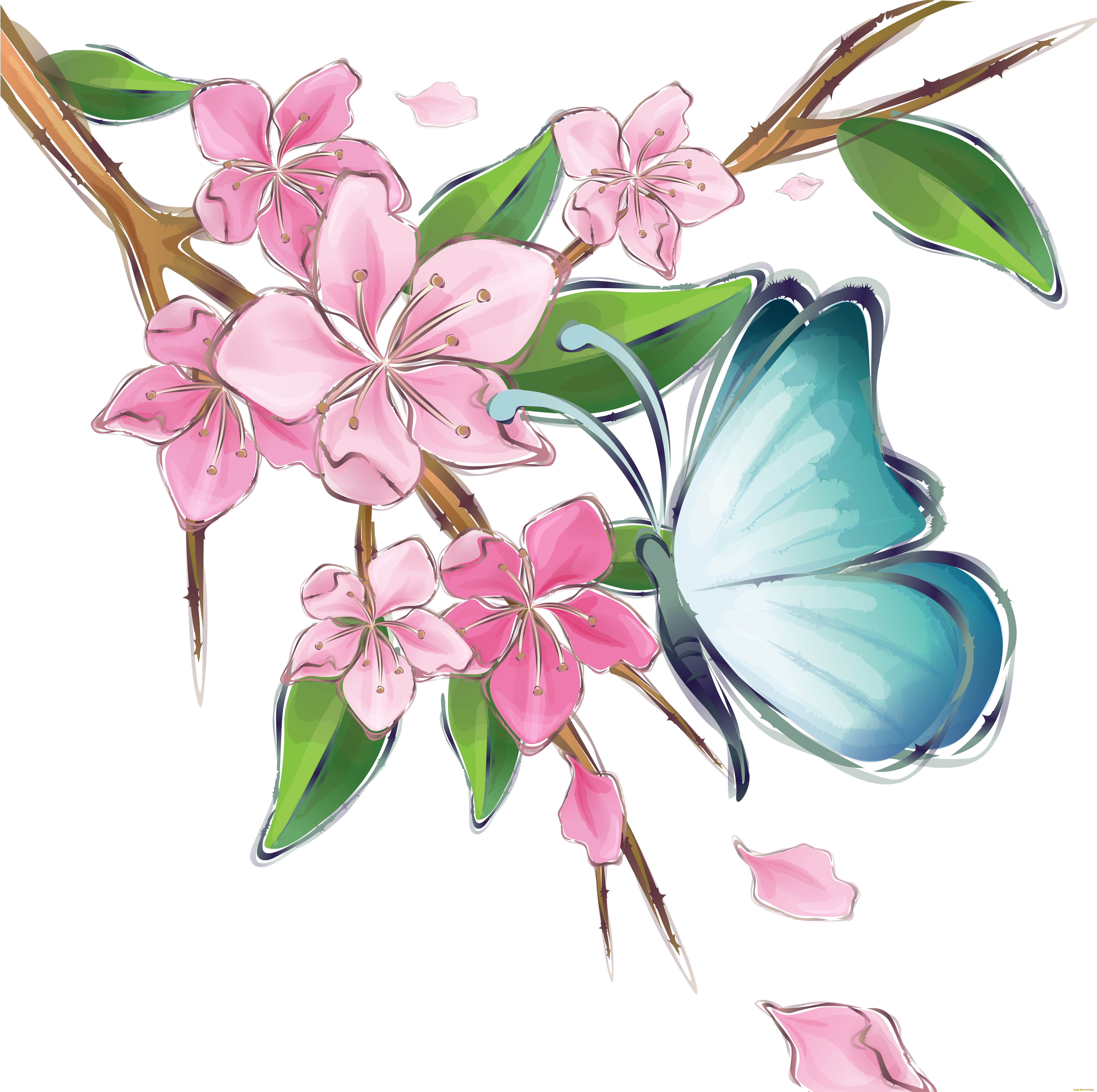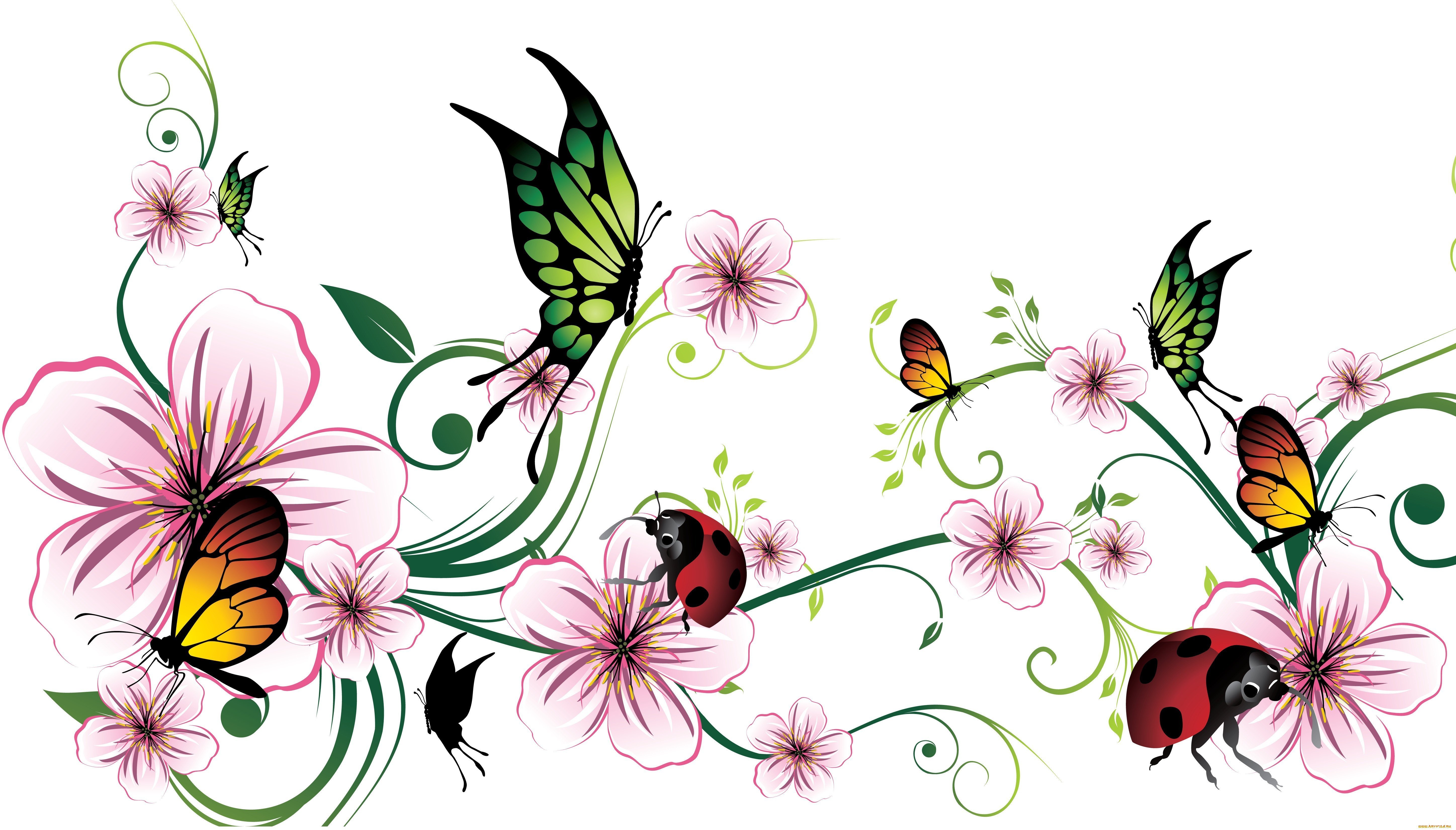 Красивые рисунки цветов и бабочек