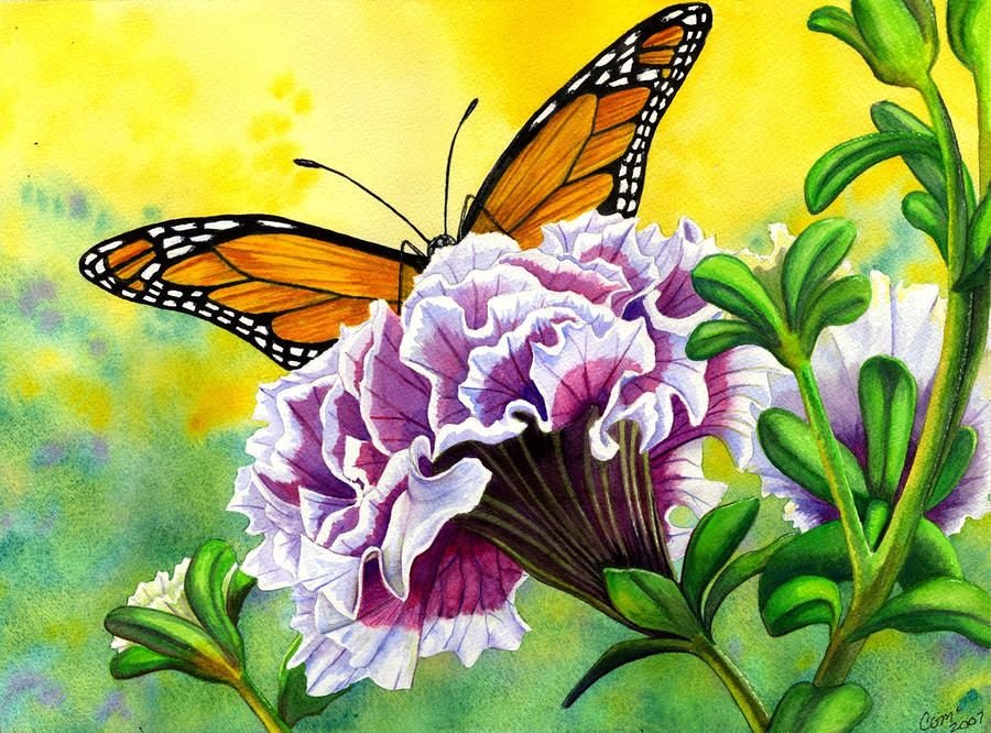 ![Бабочки на цветах живопись]()