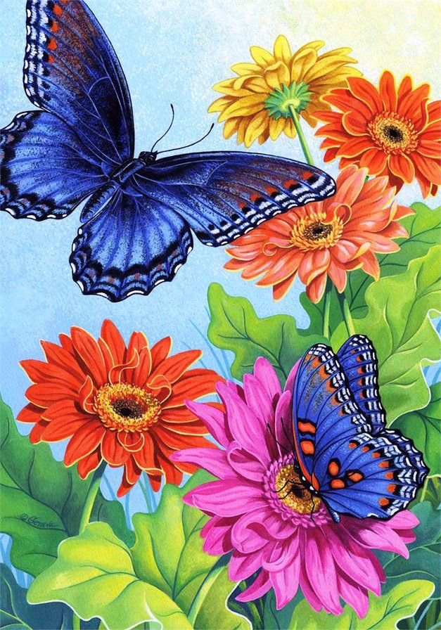 ![Картины с цветами и бабочками]()