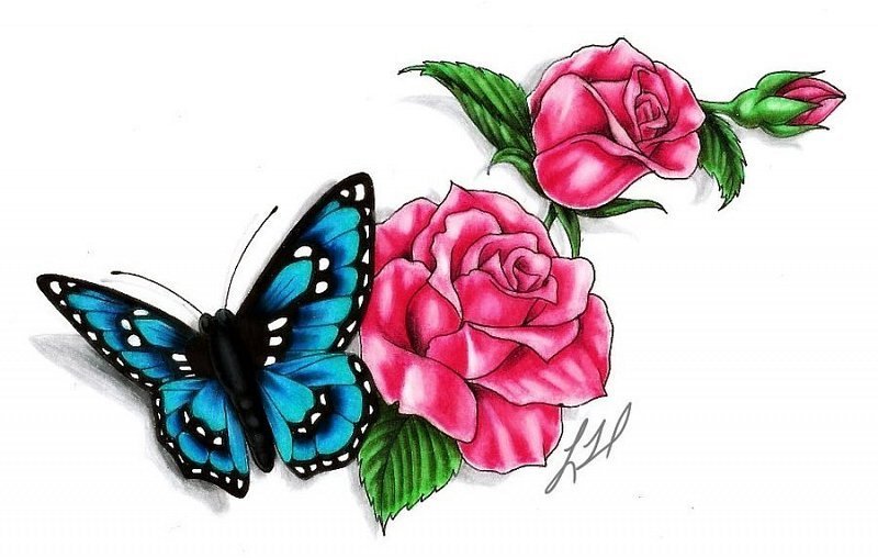 Тату цветов и бабочек цветные