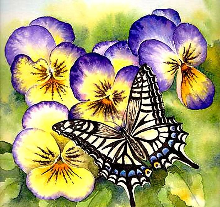 ![Анютины глазки и бабочки]()