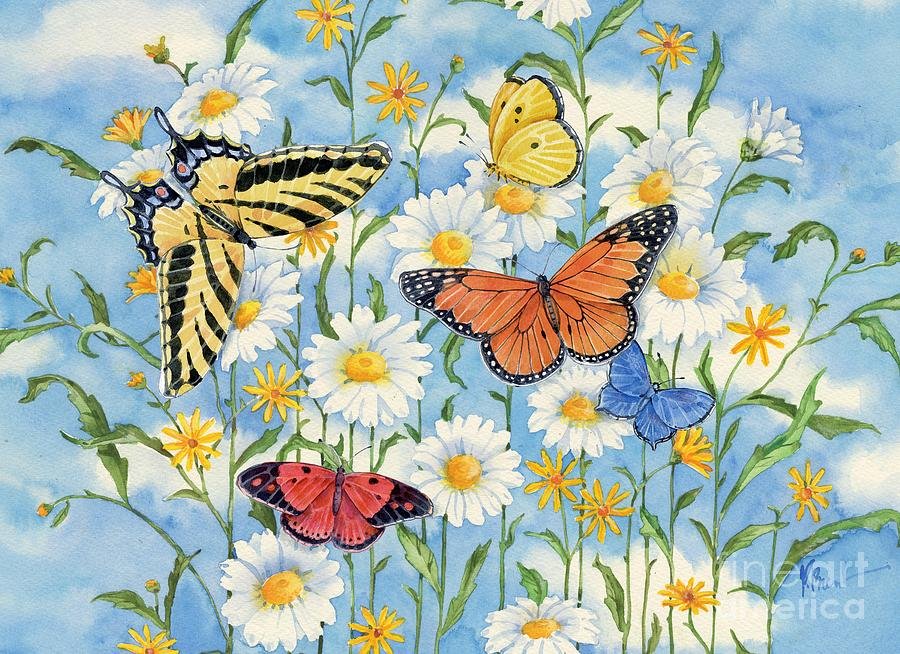 ![Ромашки с бабочками красками]()
