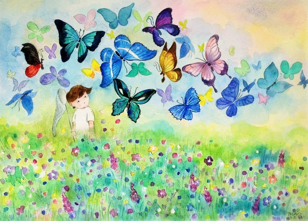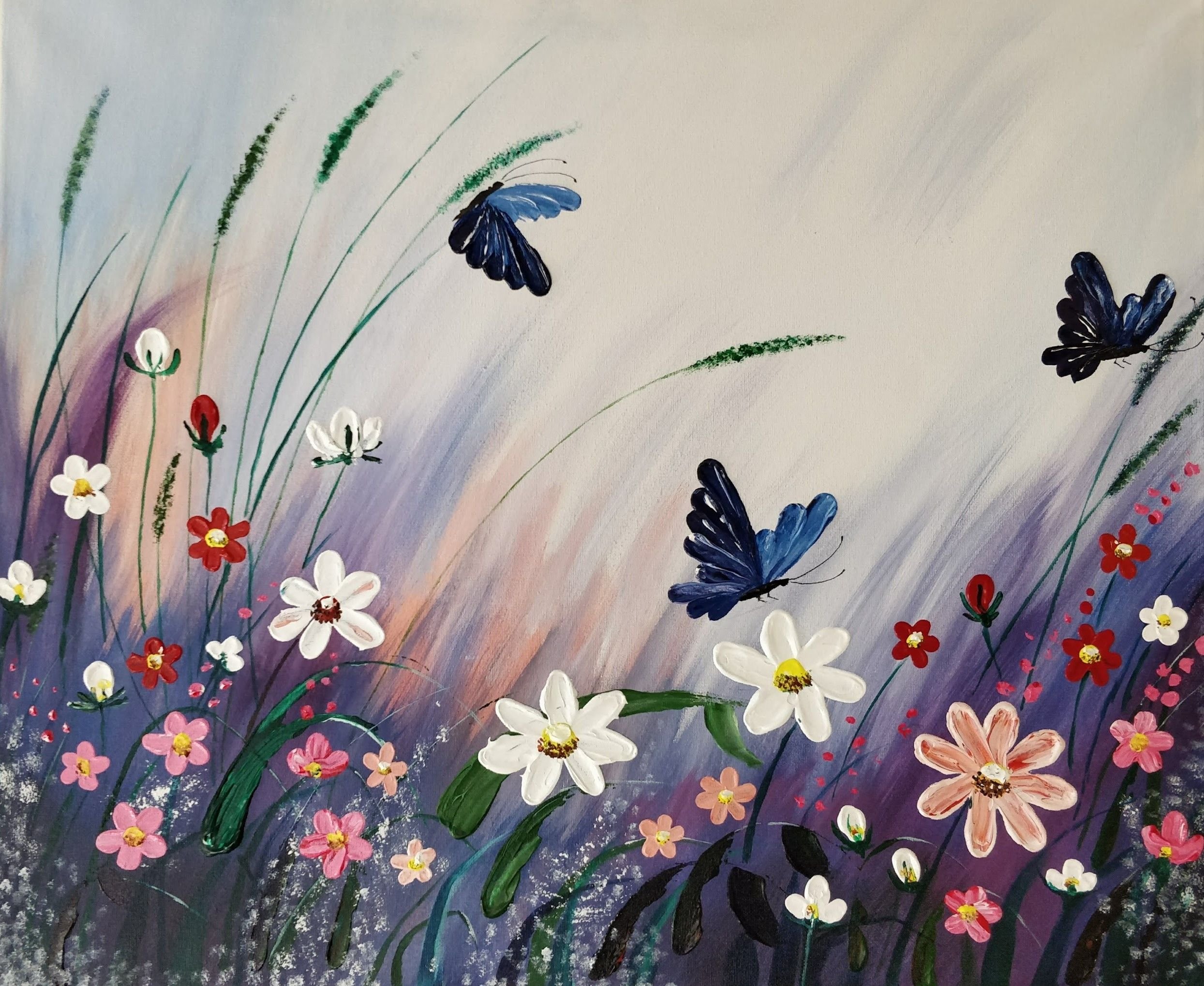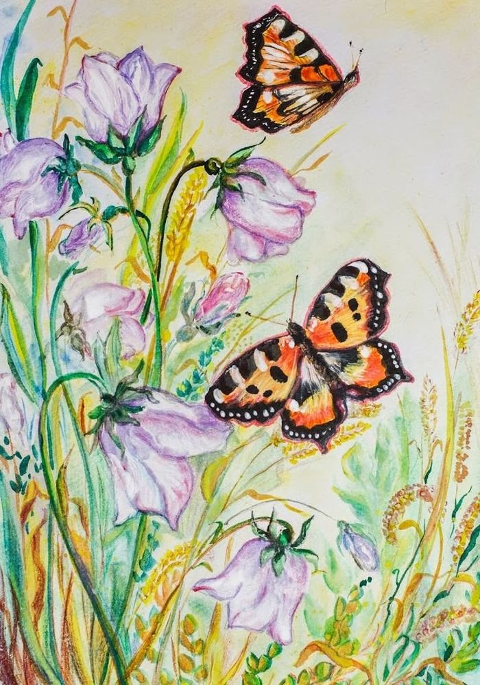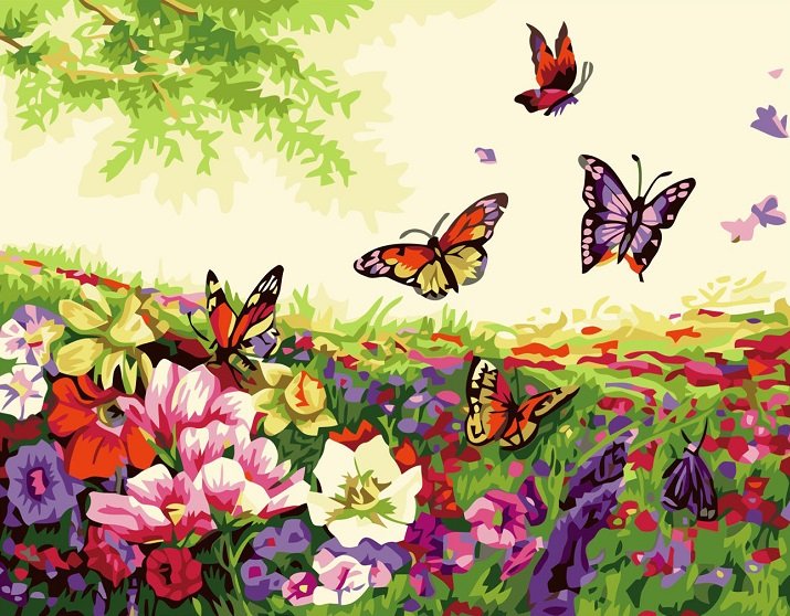 ![Луг с бабочками живопись]()