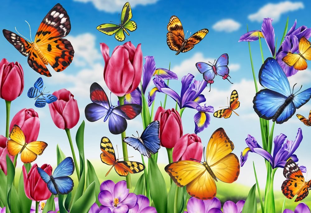 Картины с цветами и бабочками