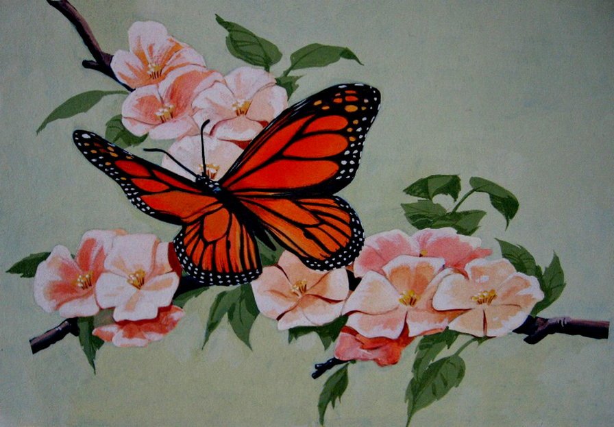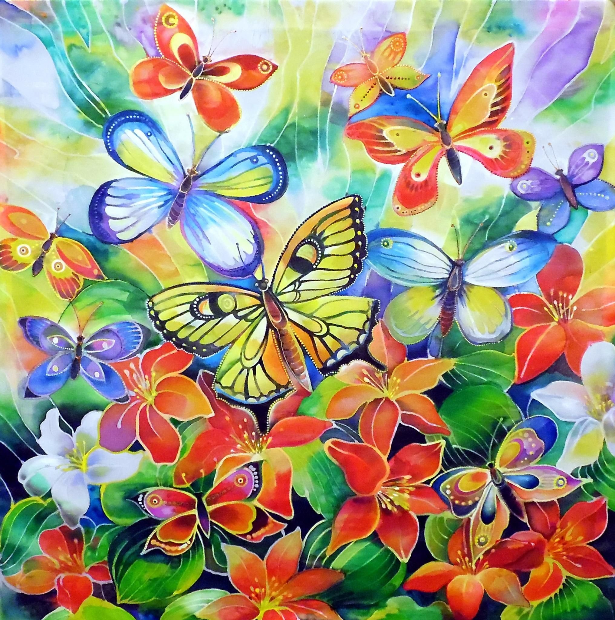 Цветы и бабочки живопись