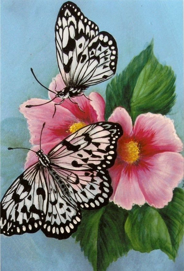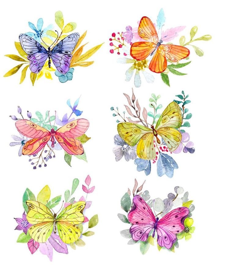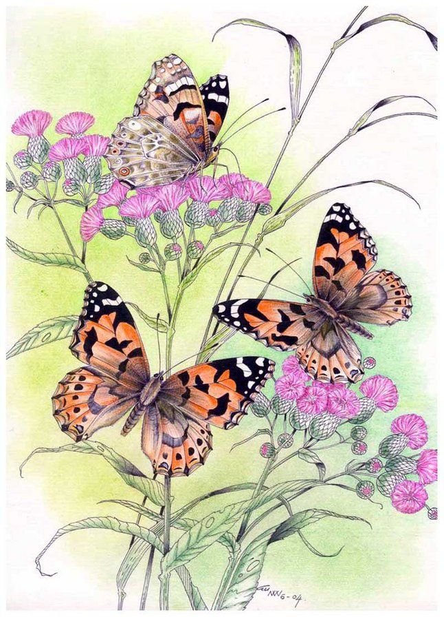 ![Рисунки с бабочками и цветами]()