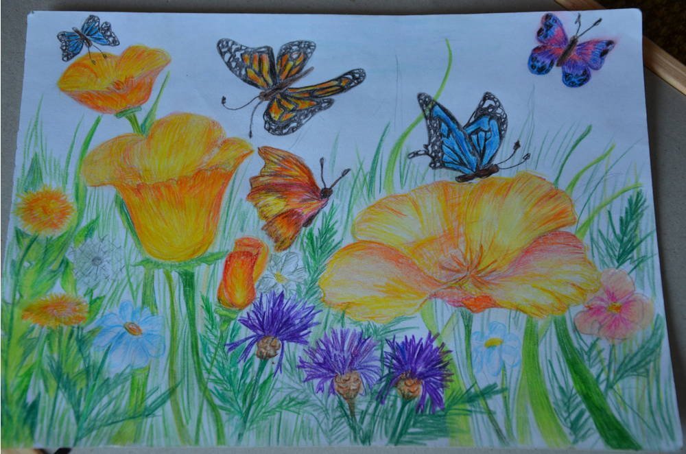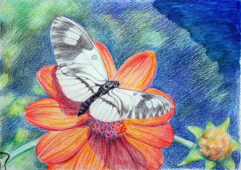 ![Бабочка акварельными карандашами]()