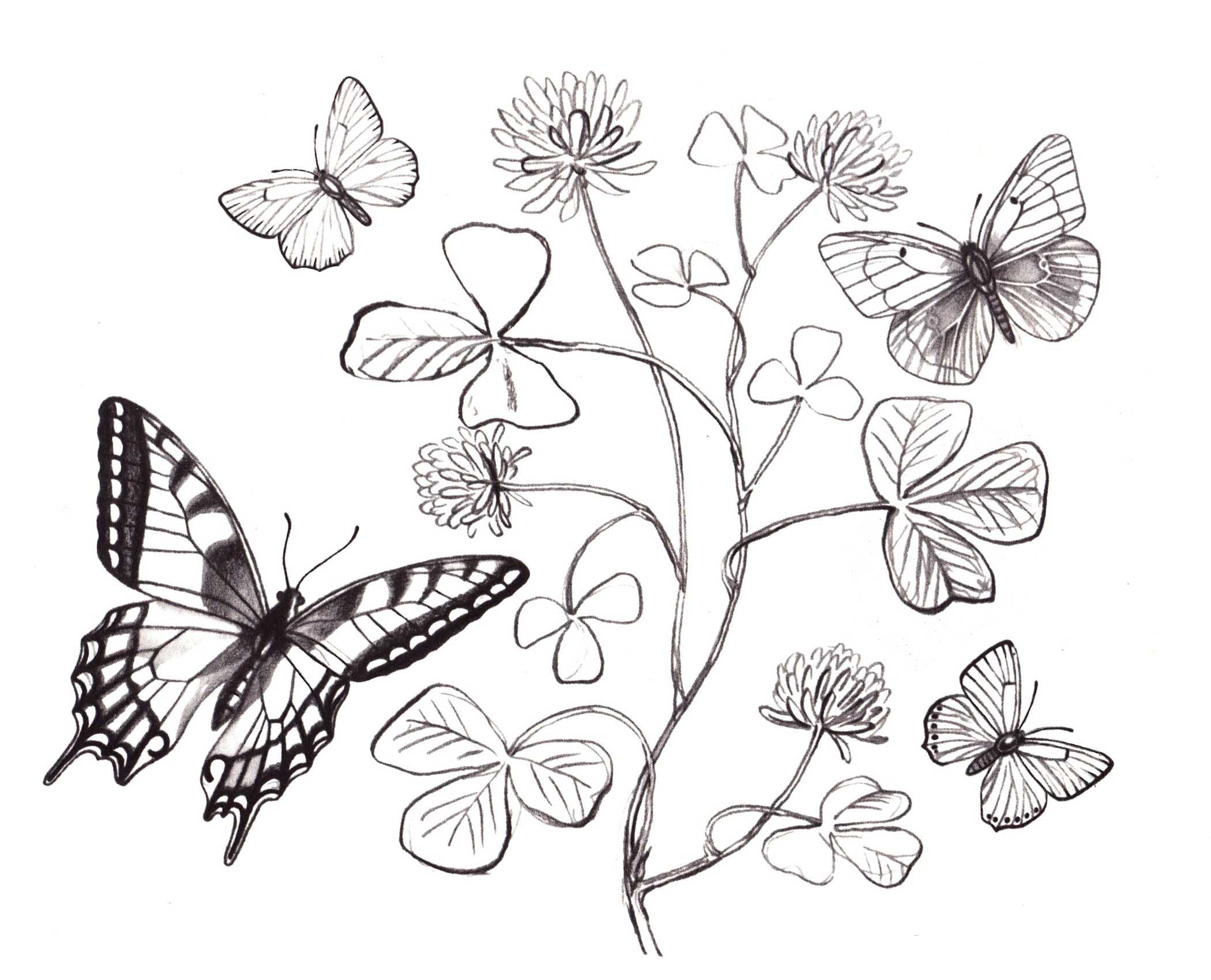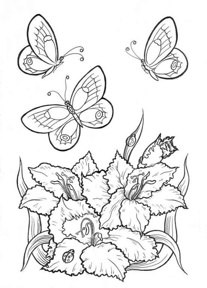 Рисунки цветов и бабочек