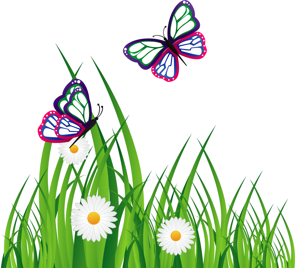 ![Бабочки летают над лугом]()