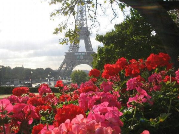 ![Эйфелева башня Франция цветы]()