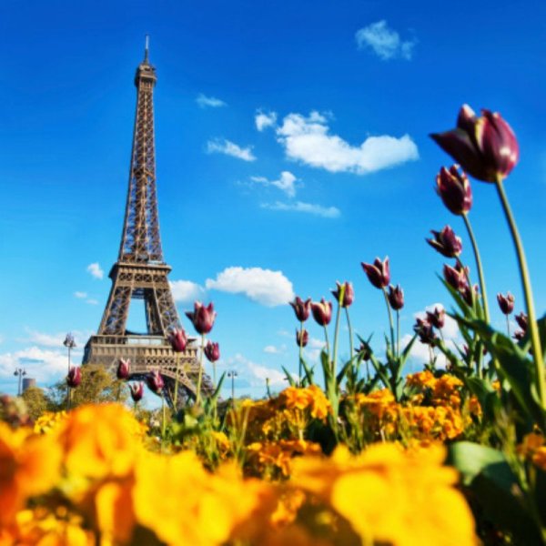 ![Эйфелева башня Весна и цветы]()