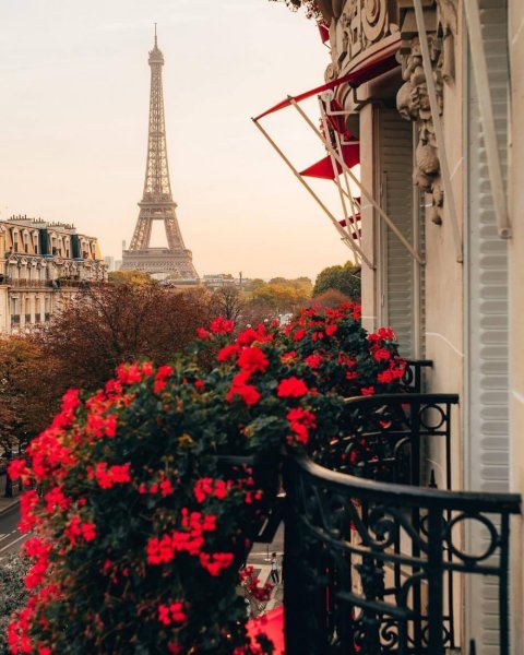 ![Балкон в Париже с видом на Эйфелеву башню]()
