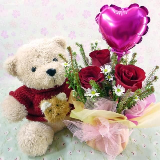 Медвежонок с цветами доброго