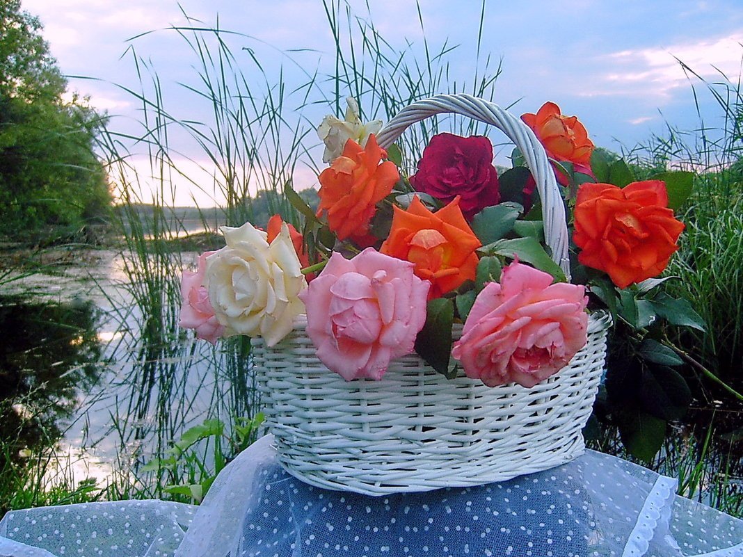 ![Цветы в корзине]()