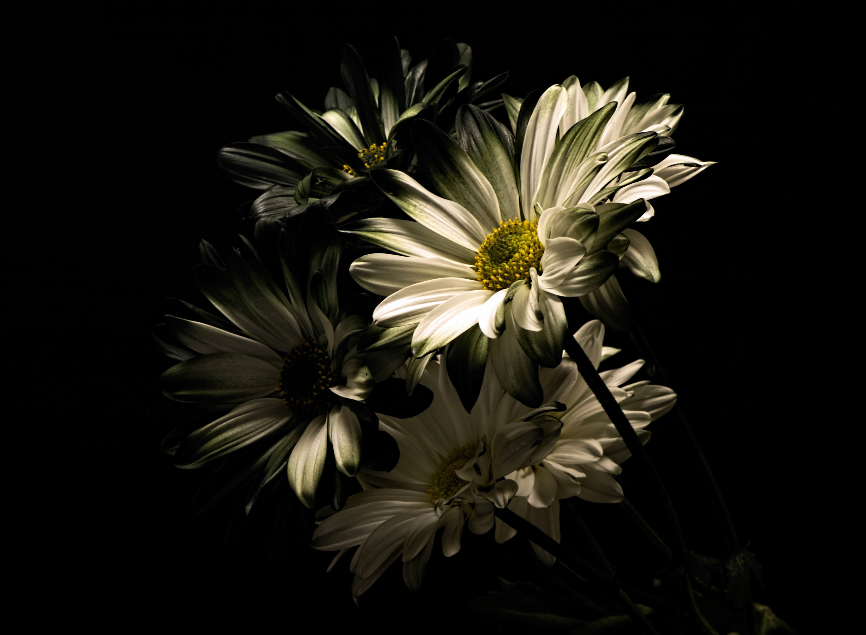 Белый букет на черном фоне