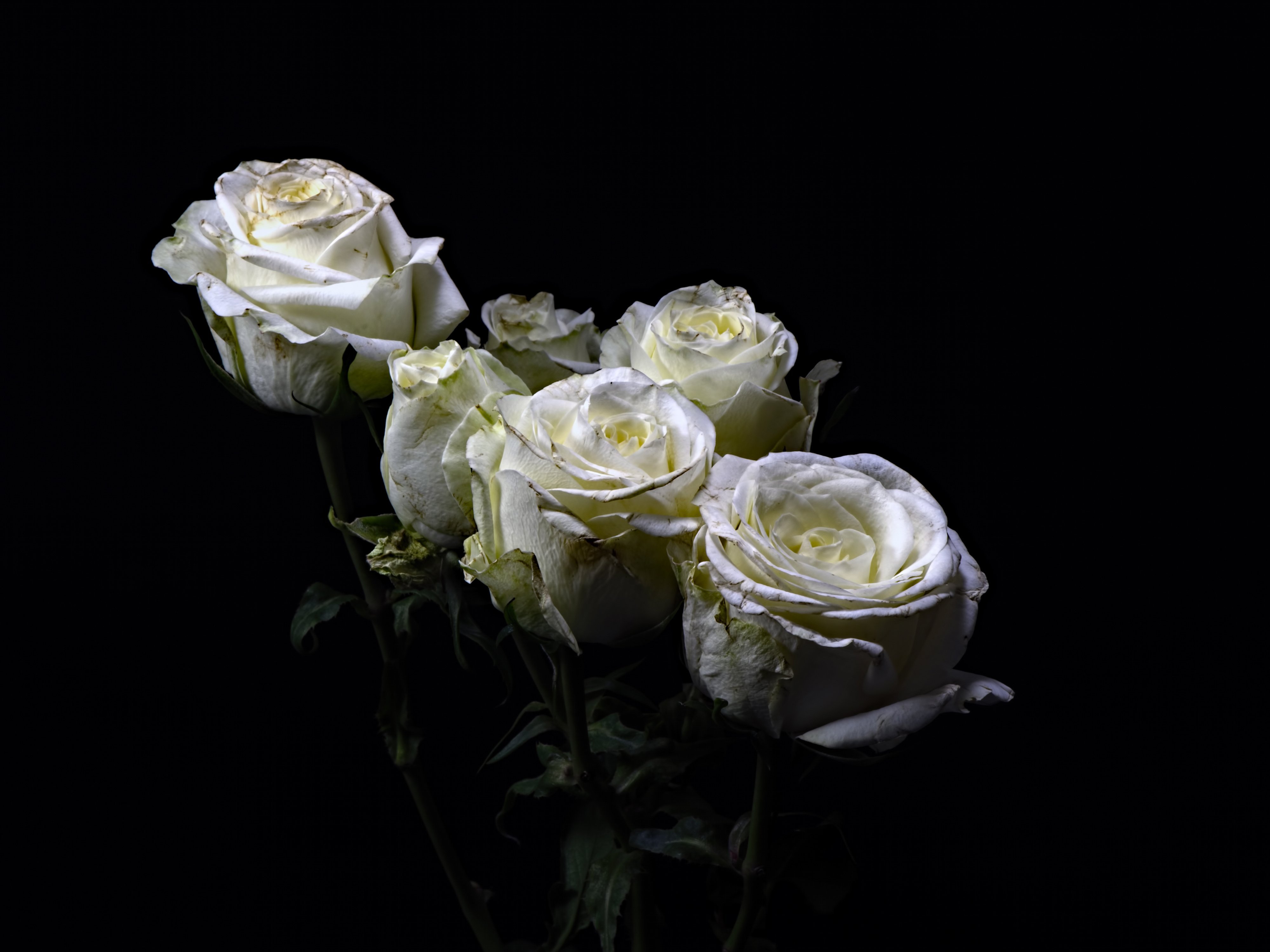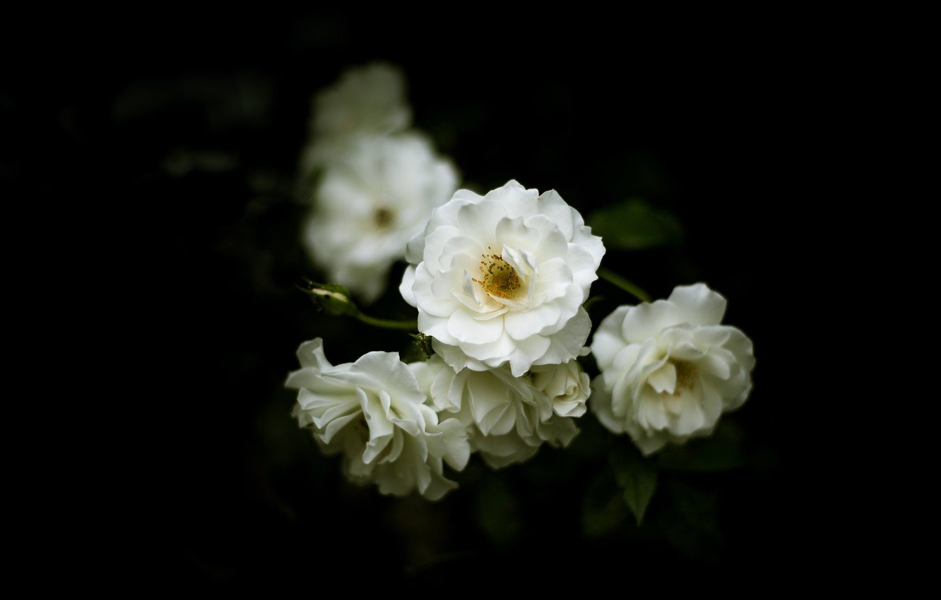 ![Букет белых роз на темном фоне]()