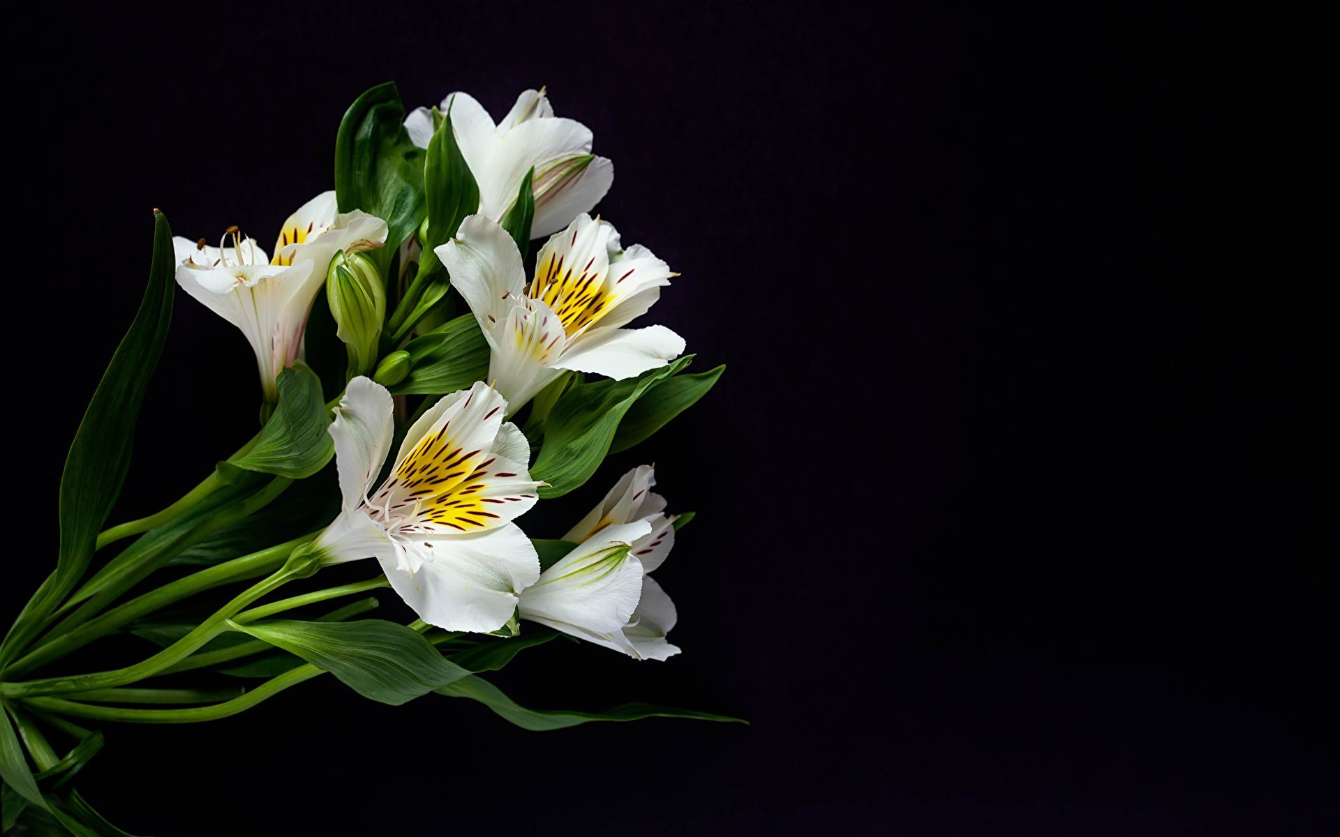 ![Белый букет на черном фоне]()