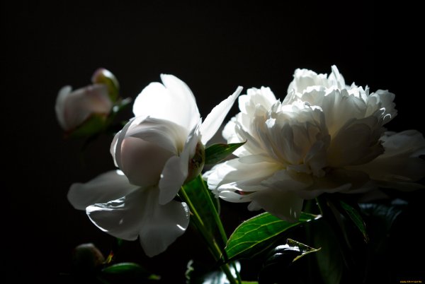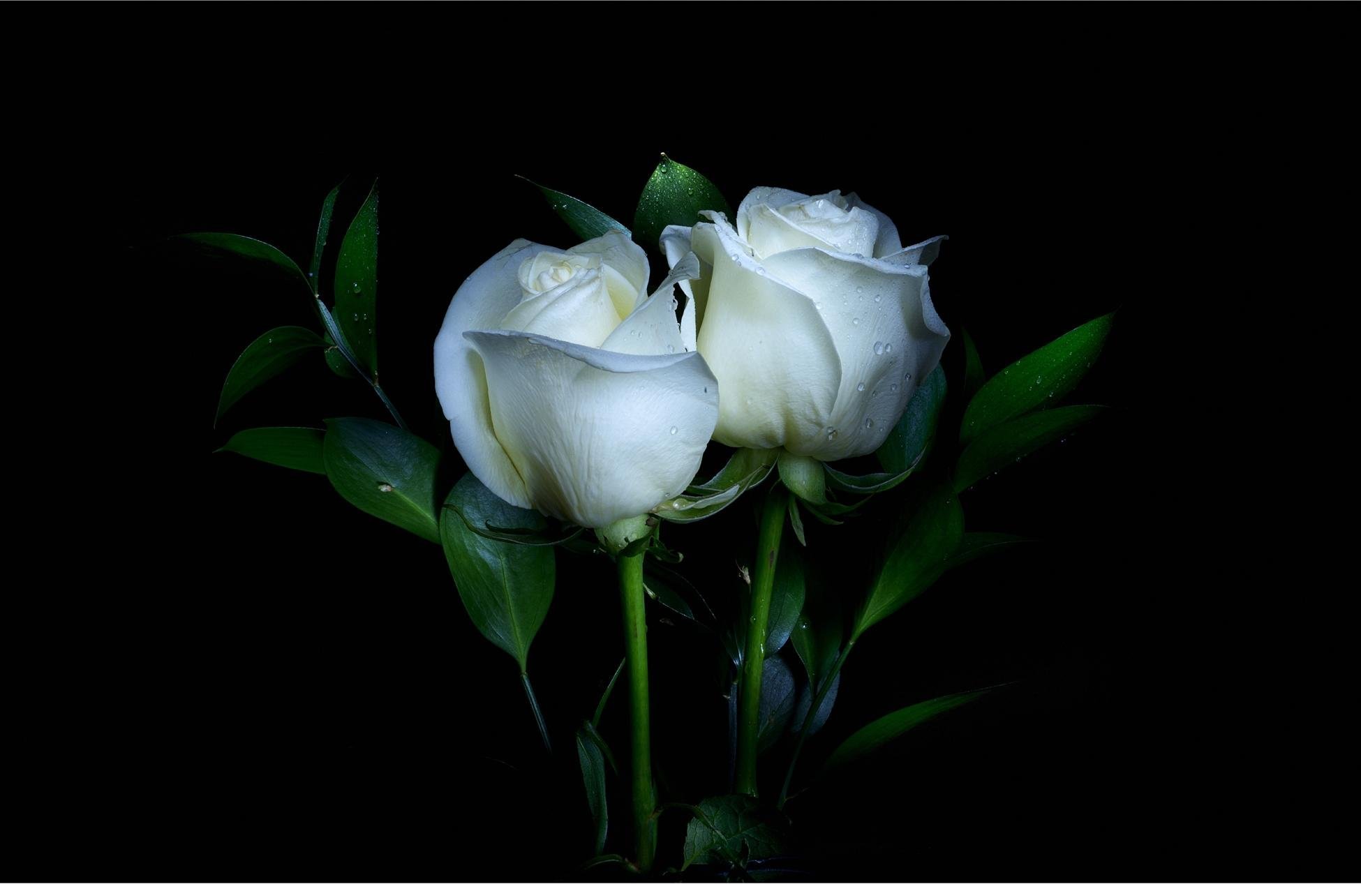 ![Белые розы на темном фоне]()