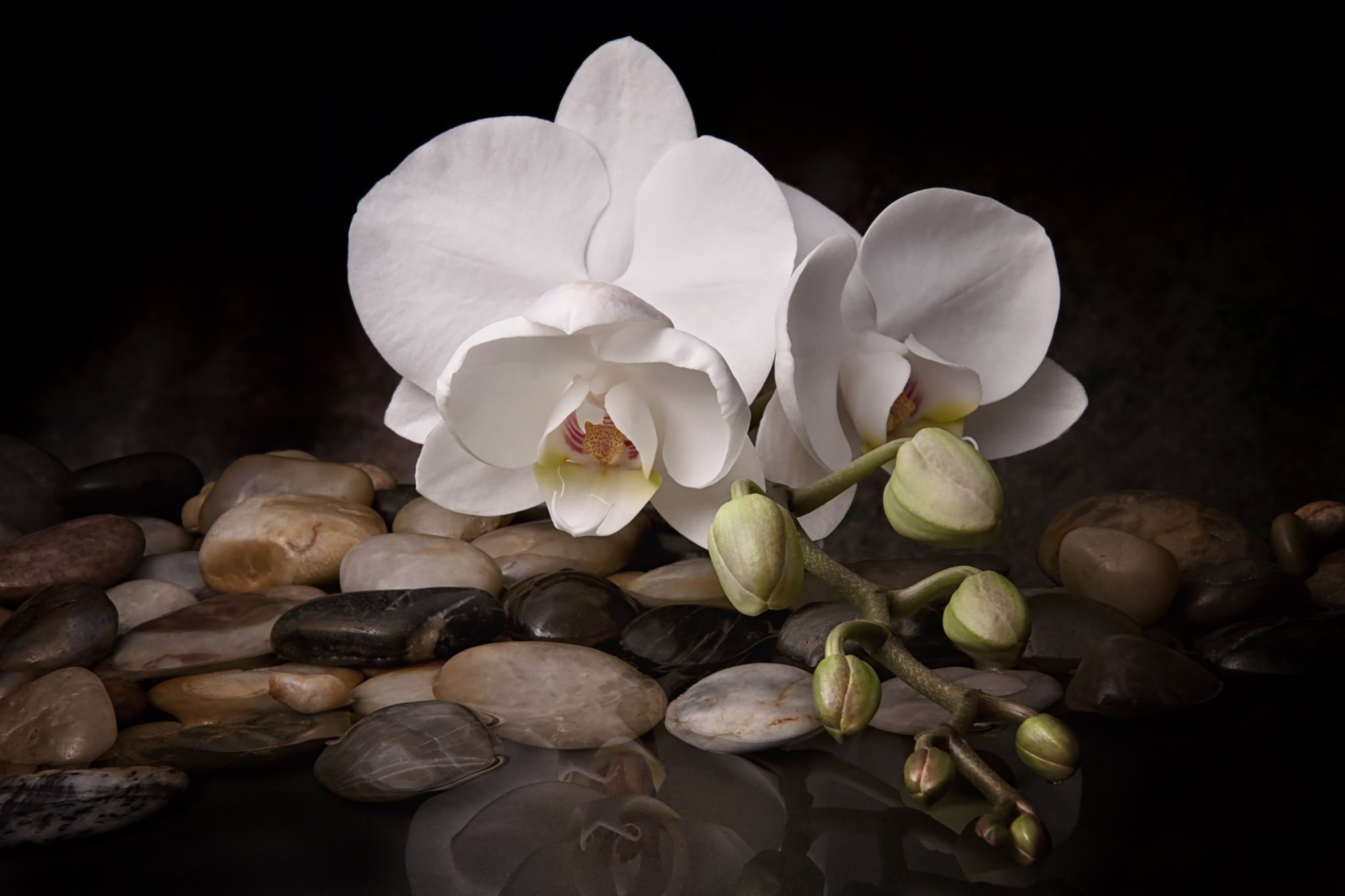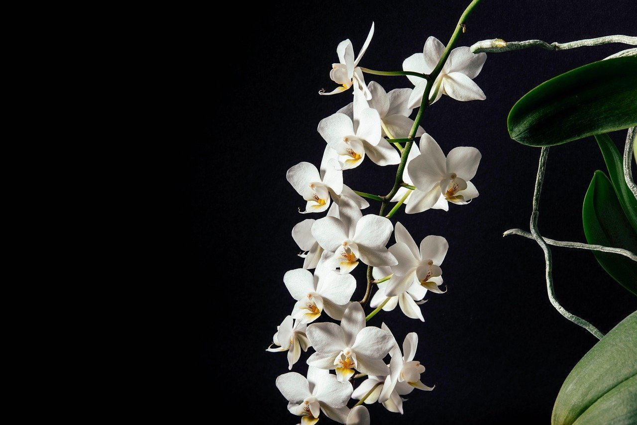 Белая Орхидея на черном фоне