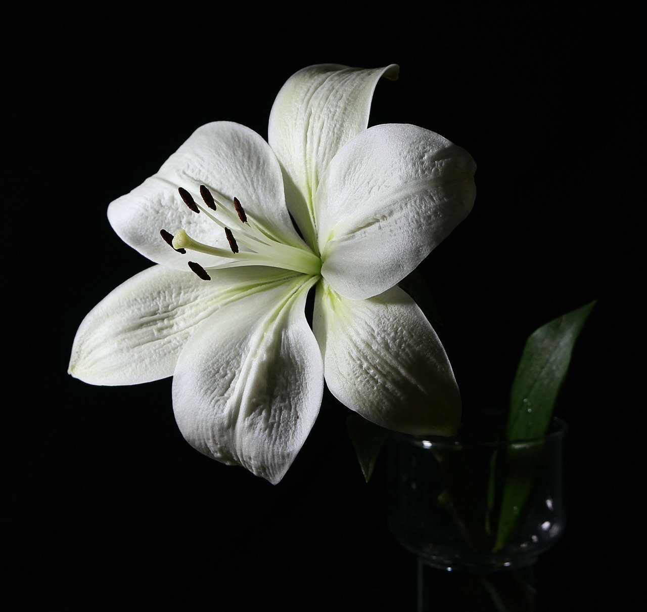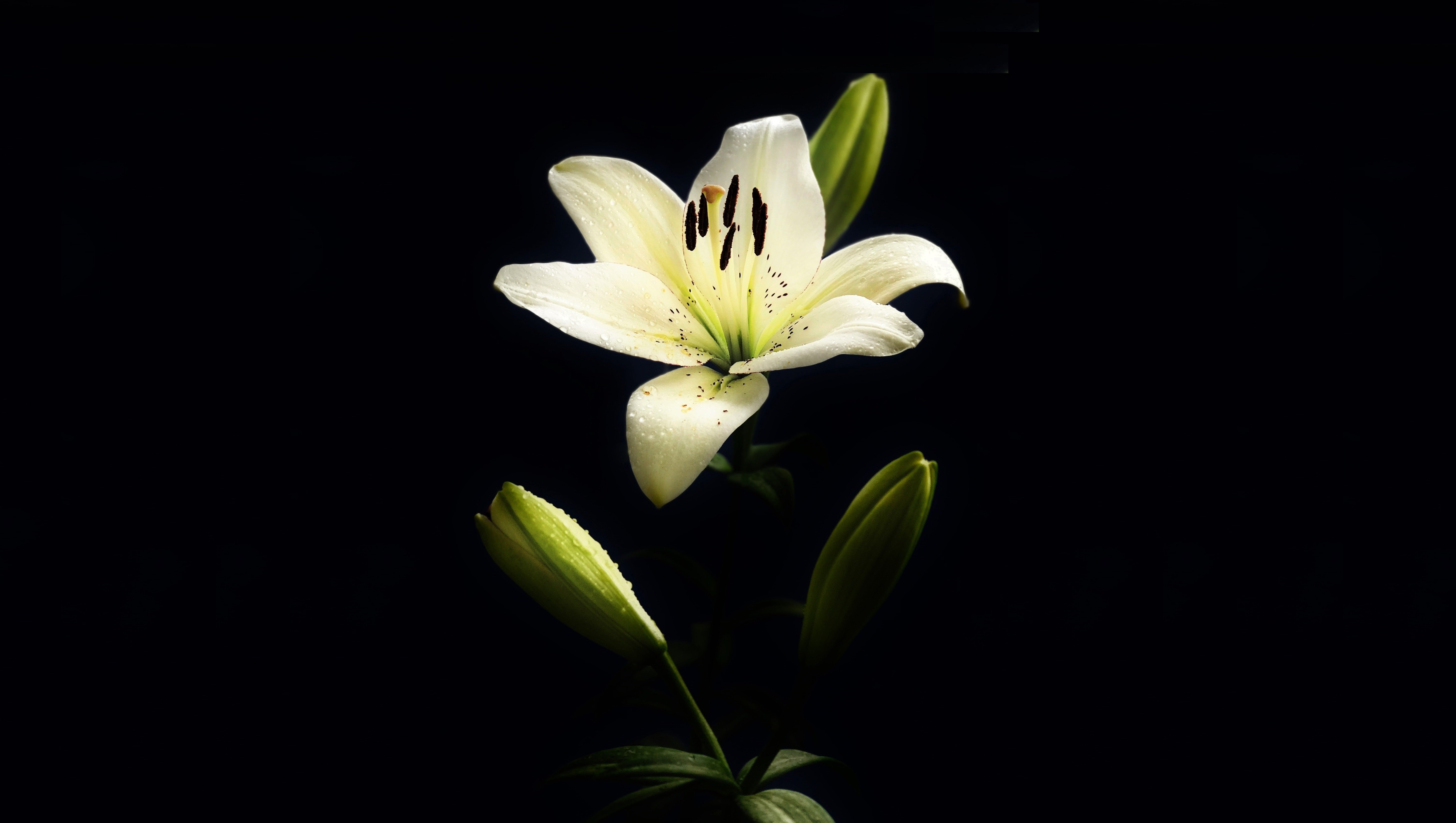 Белая Лилия на черном фоне
