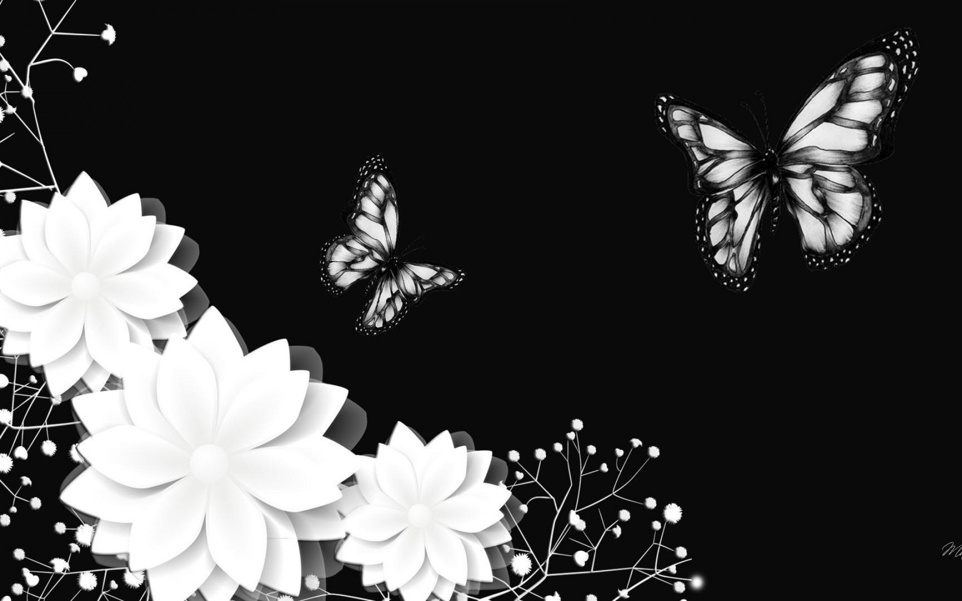 Белые цветы на черном фоне