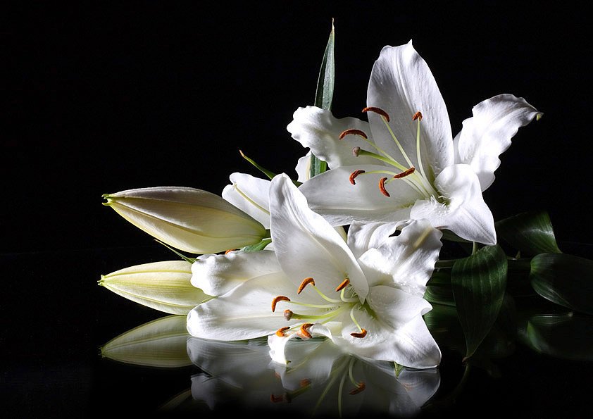 ![Лилии на черном фоне]()