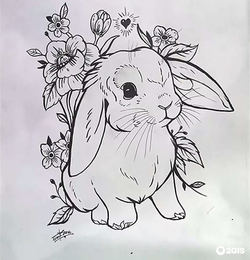 ![Кролик тату эскиз]()