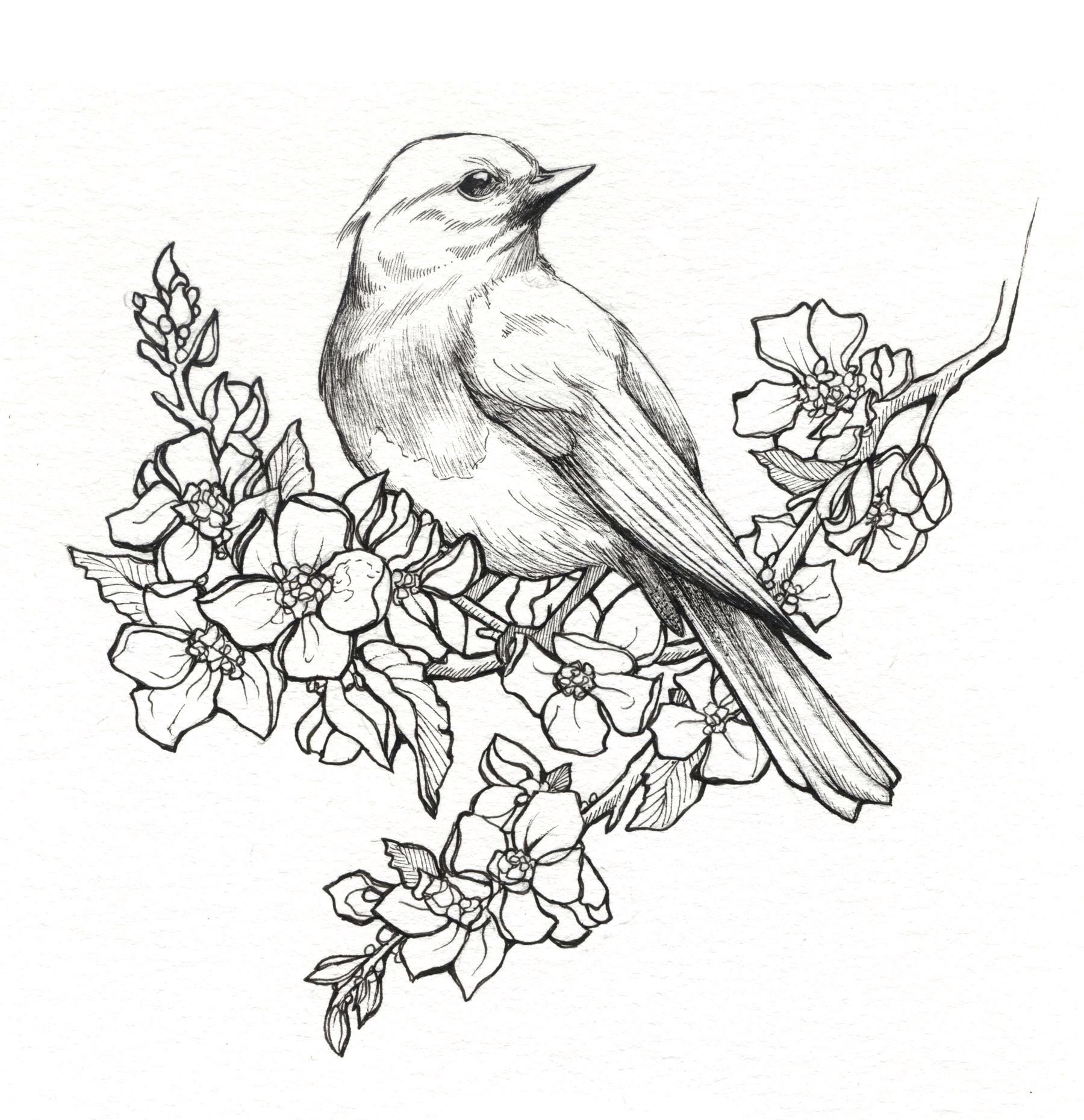 Цветы и птицы карандашом