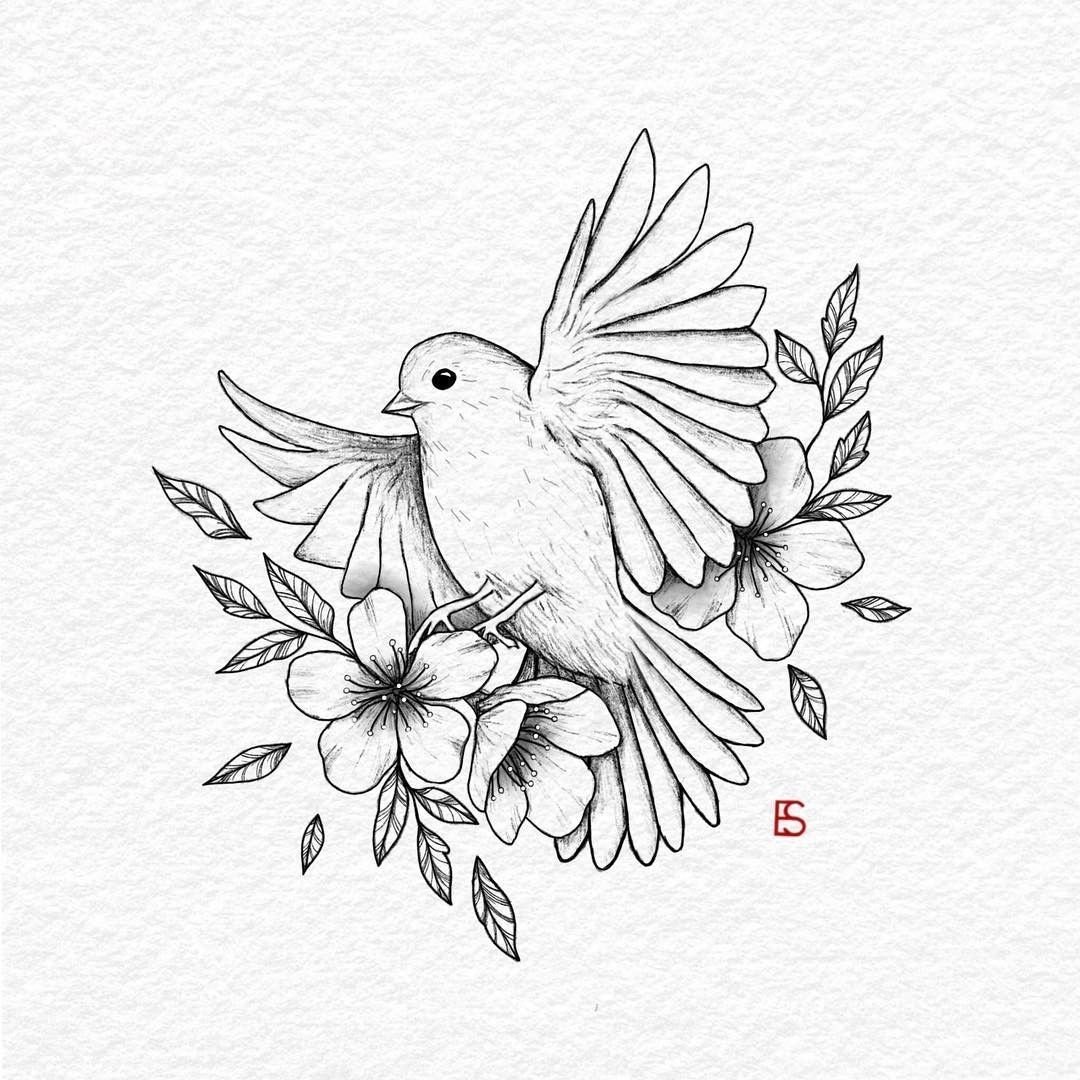 ![Эскиз красивой птицы]()