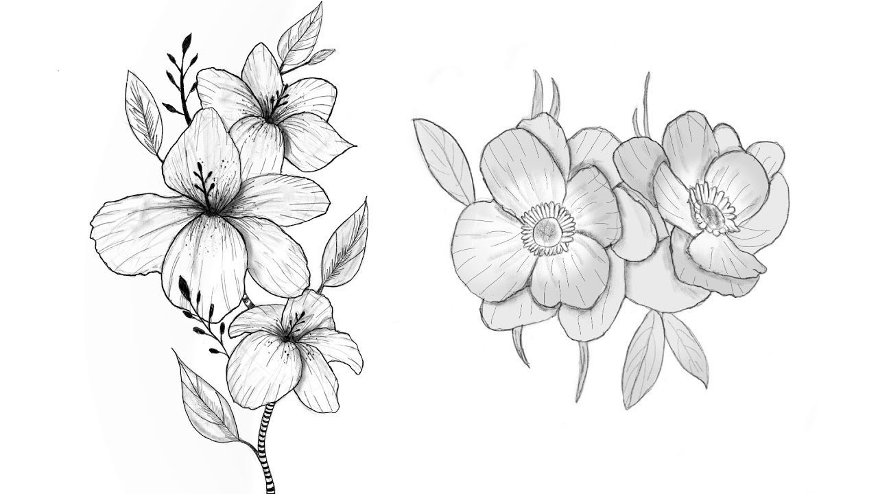 ![Цветущие цветы карандашом]()