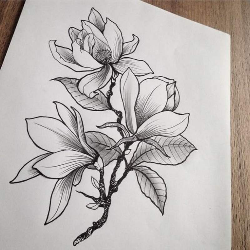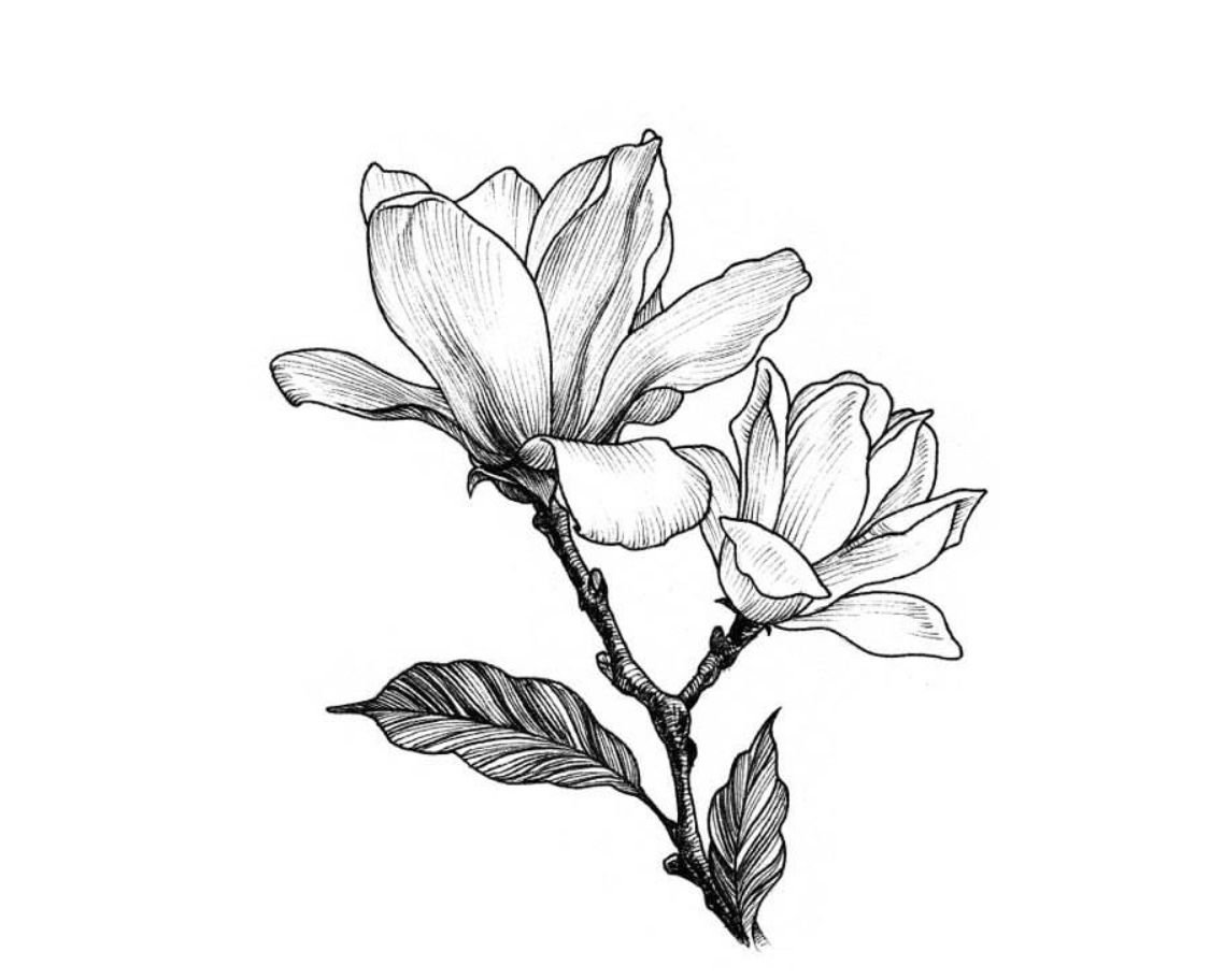 ![Эскиз магнолии веточка]()