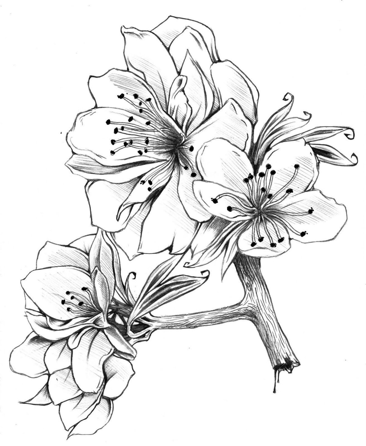 Цветущие цветы карандашом