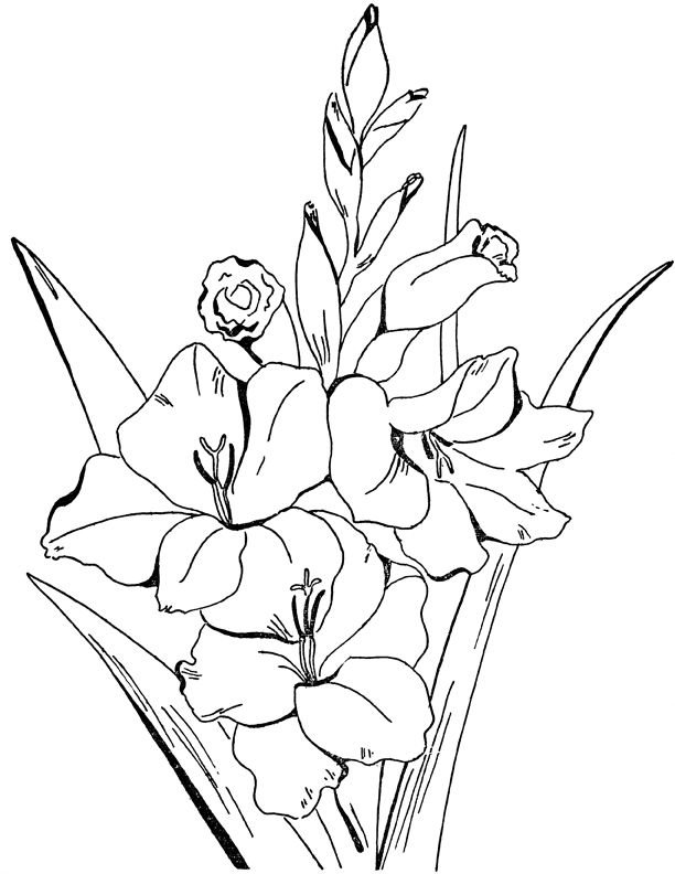 Раскраски цветы гладиолусы