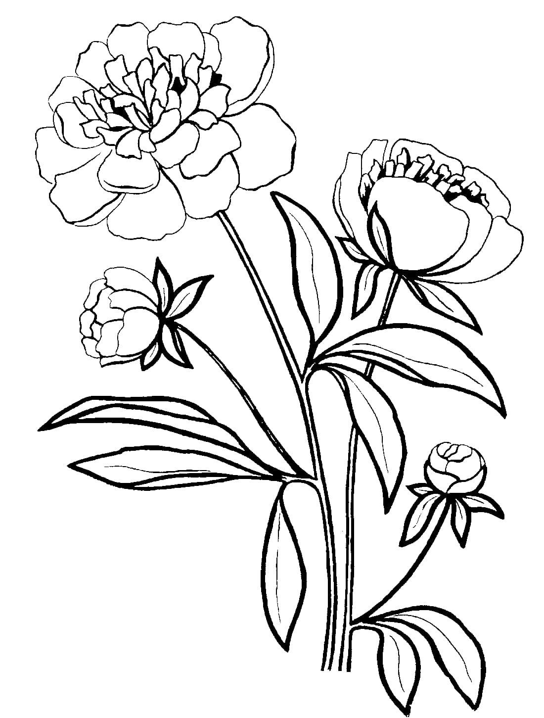 Пионы раскраска