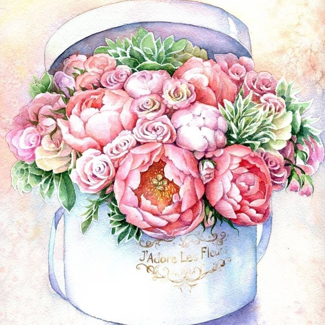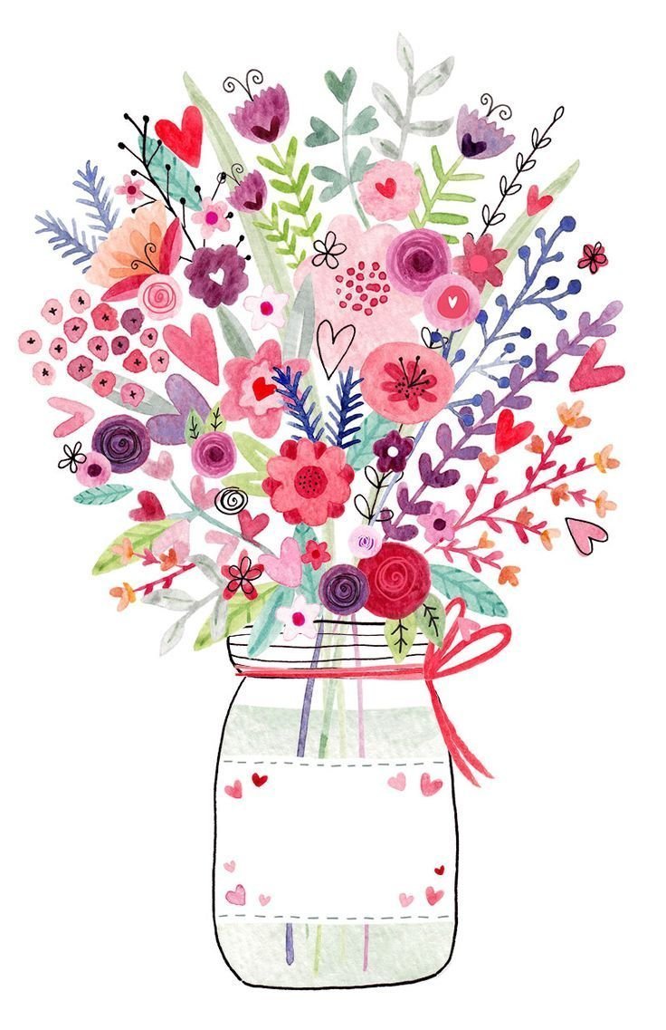 Открытки с цветами нарисованные